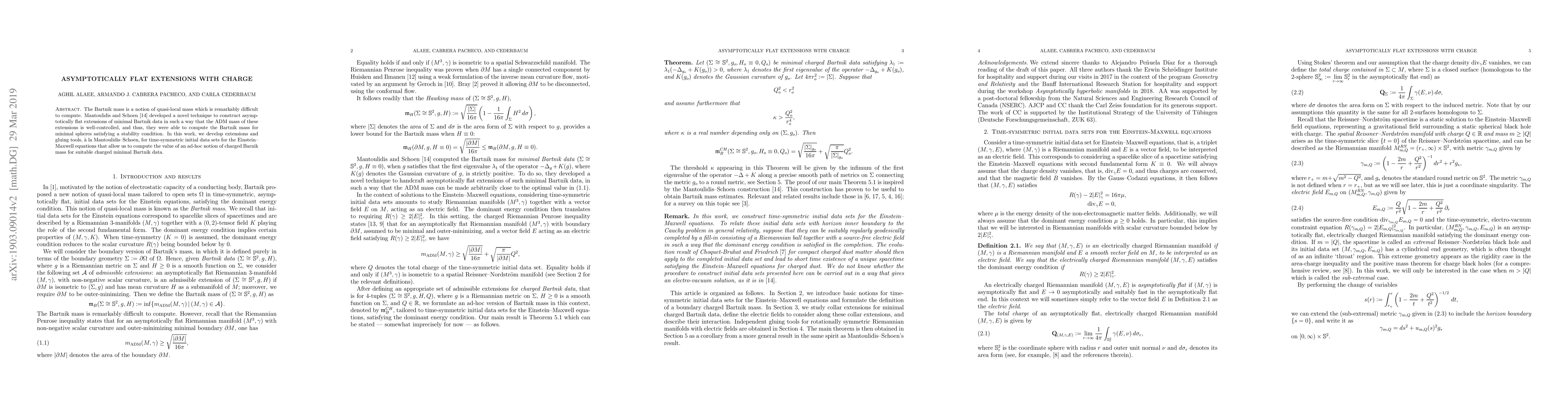 This paper develops new techniques to construct asymptotically flat extensions of charged minimal Bartnik data, enabling the computation of a charged version of the Bartnik mass for suitable initial data sets in the Einstein-Maxwell equations, building on the methods introduced by Mantoulidis and Schoen.