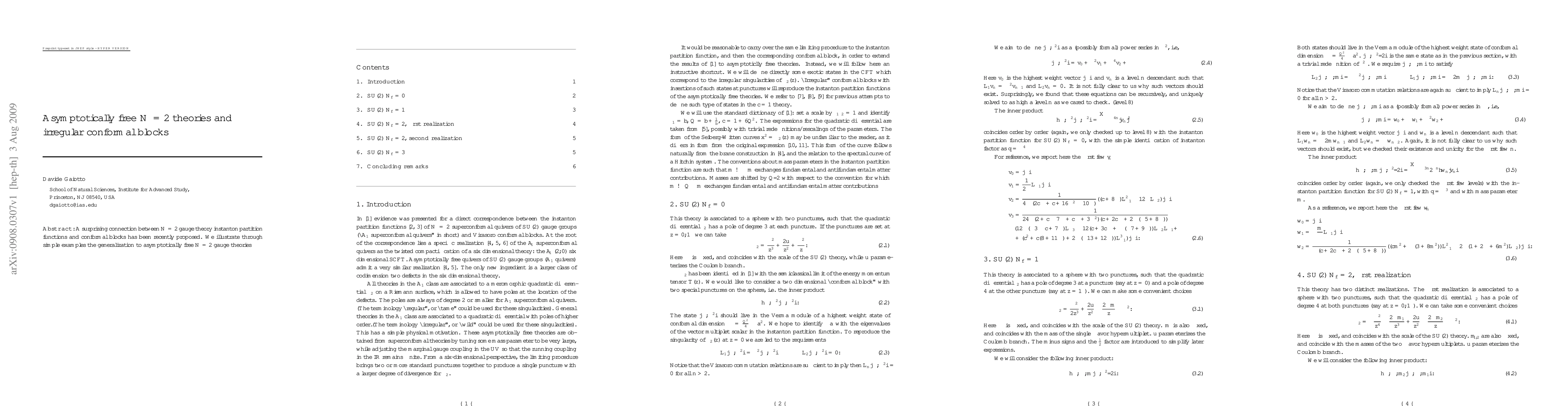 This paper explores the intriguing link between the instanton partition functions of asymptotically free N=2 gauge theories and conformal blocks, providing simple examples to elucidate this connection. The work generalizes recent findings in N=2 gauge theory to a broader class of theories.