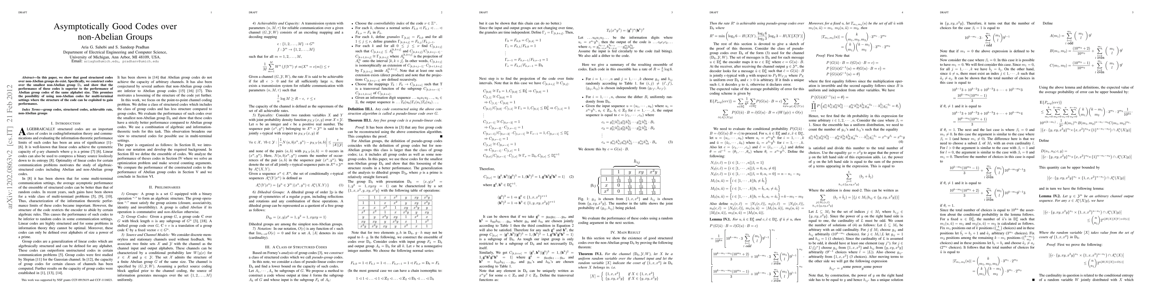 This paper constructs asymptotically good codes over the non-Abelian group $\mathds{D}_6$, demonstrating superior performance compared to Abelian group codes of the same alphabet size, suggesting potential for enhanced performance in multi-terminal settings.