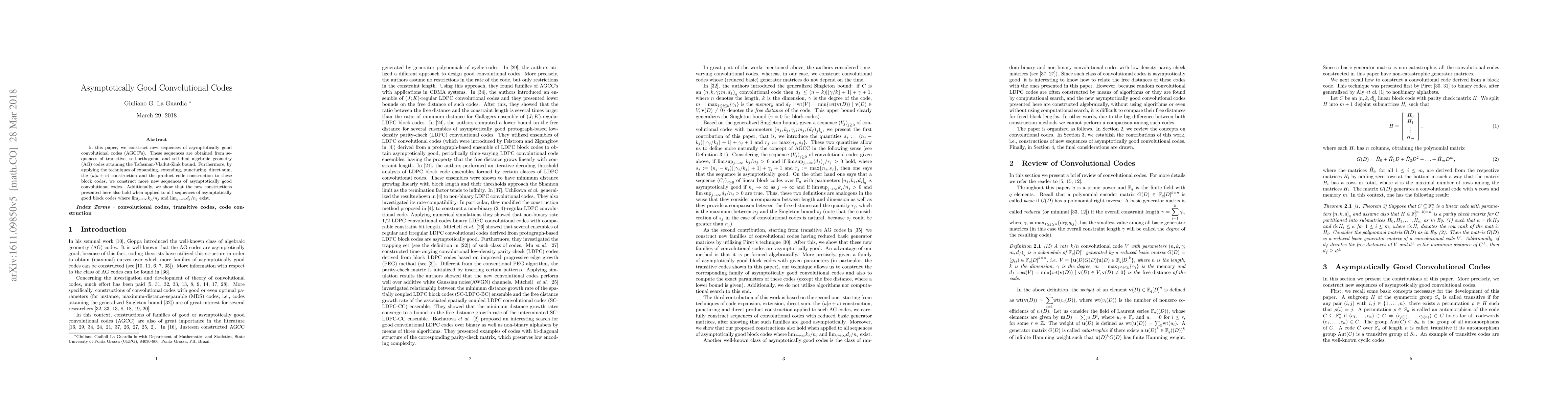 This paper constructs new sequences of asymptotically good convolutional codes derived from transitive, self-orthogonal, and self-dual block codes that meet the Tsfasman-Vladut-Zink bound. Various construction techniques are applied to these block codes to generate additional sequences of asymptotically good convolutional codes.