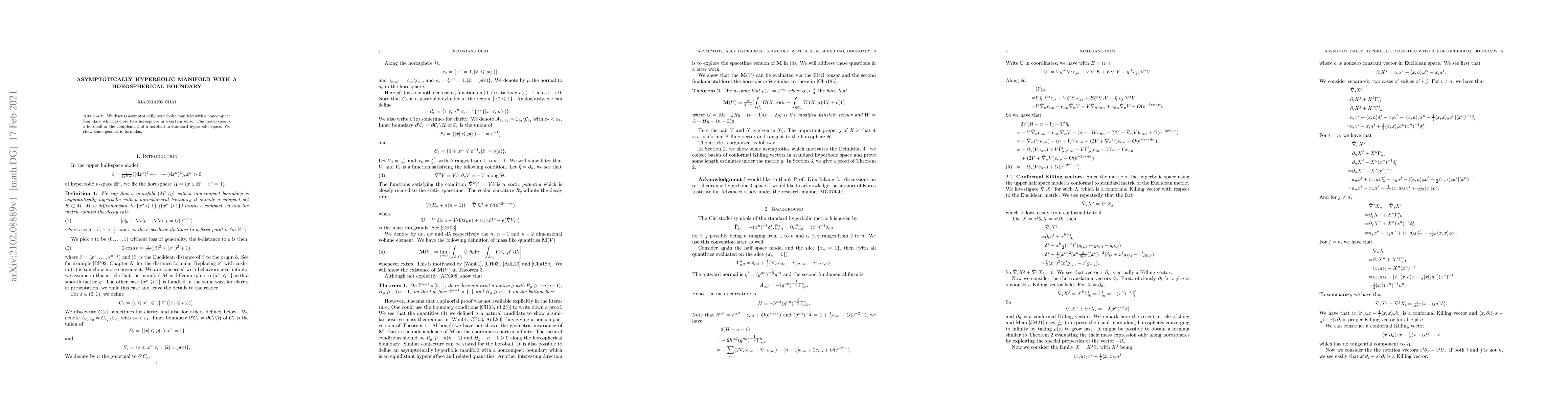 This paper explores asymptotically hyperbolic manifolds with noncompact boundaries resembling horospherical structures, specifically focusing on horoballs and their complements in hyperbolic space, and presents associated geometric formulas.