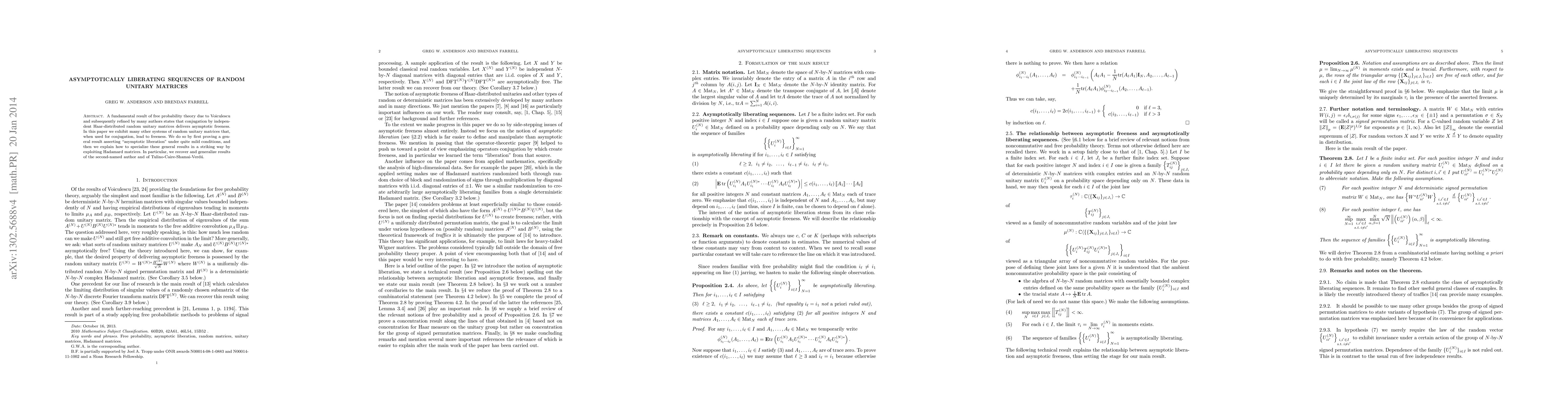 This paper demonstrates that various sequences of random unitary matrices, when used for conjugation, lead to asymptotic freeness. It establishes a general "asymptotic liberation" theorem under mild conditions, and applies this to Hadamard matrices to generalize prior results on freeness.