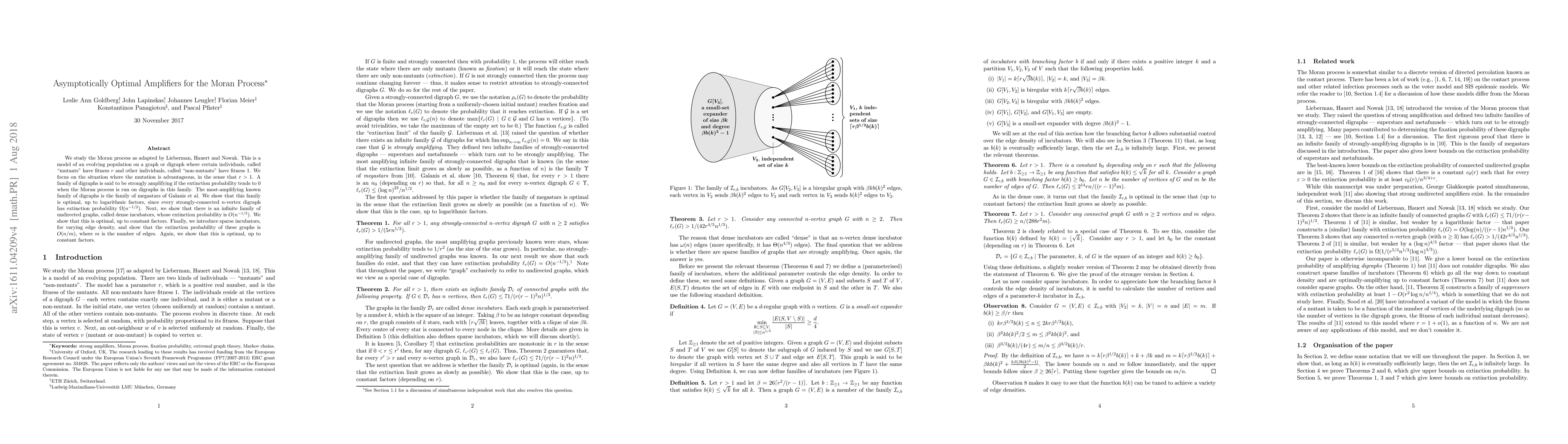 Researchers developed a new understanding of amplifying digraphs for the Moran process, finding that certain graph structures can lead to extinction probabilities that grow slowly with the number of nodes, offering insights into evolutionary dynamics.