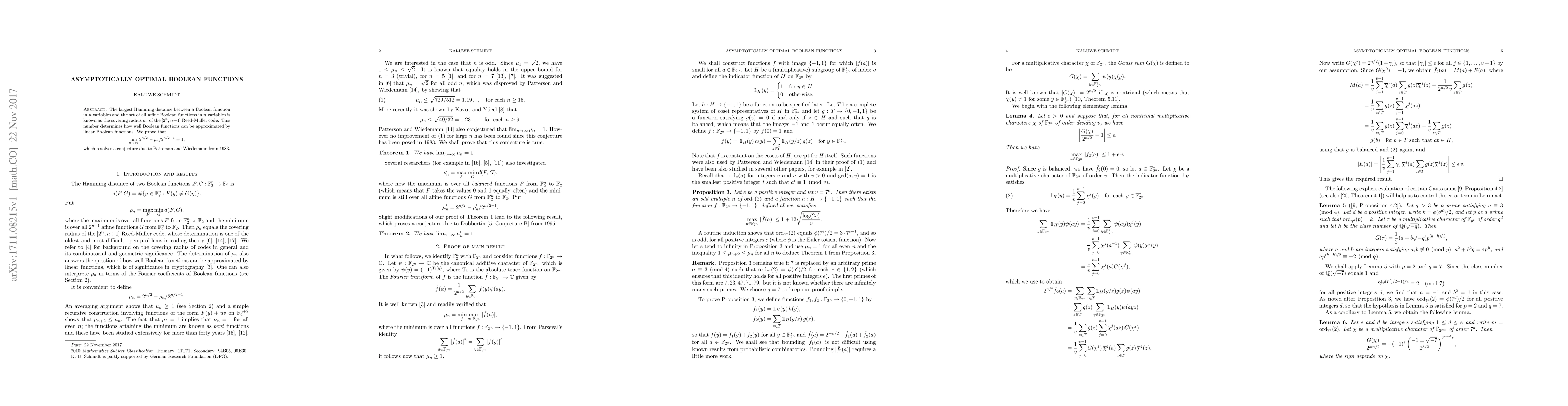 This paper resolves a long-standing conjecture by proving that the covering radius $\rho_n$ of the Reed-Muller code asymptotically approaches $2^{n/2}-2^{n/2-1}$, indicating optimal approximation of Boolean functions by linear functions as $n$ tends to infinity.