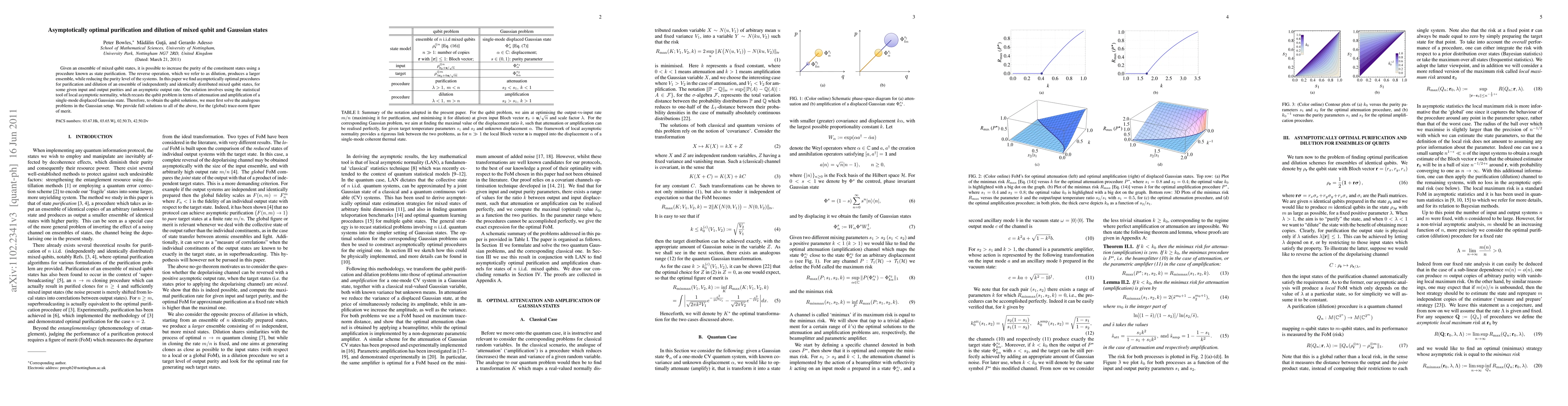 Given an ensemble of mixed qubit states, it is possible to increase the purity of the constituent states using a procedure known as state purification. The reverse operation, which we refer to as dilution, reduces the level of purity present in the constituent states. In this paper we find asymptotically optimal procedures for purification and dilution of an ensemble of i.i.d. mixed qubit states, for some given input and output purities and an asymptotic output rate. Our solution involves using the statistical tool of local asymptotic normality, which recasts the qubit problem in terms of attenuation and amplification of a single displaced Gaussian state. Therefore, to obtain the qubit solutions, we must first solve the analogous problems in the Gaussian setup. We provide full solutions to all of the above, for the (global) trace norm figure of merit.