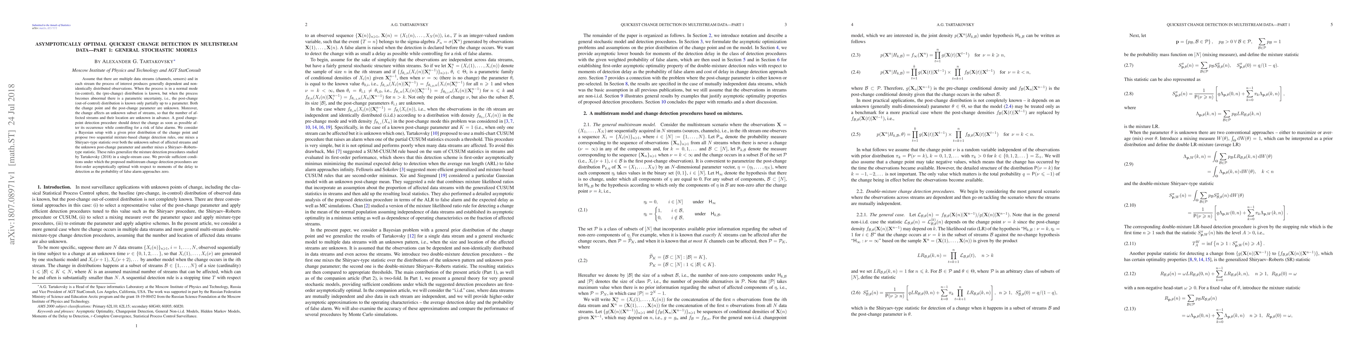 This research paper proposes two change detection rules for multistream data that can detect changes in multiple channels with unknown subset and parameter, aiming to minimize delay while controlling false alarms.