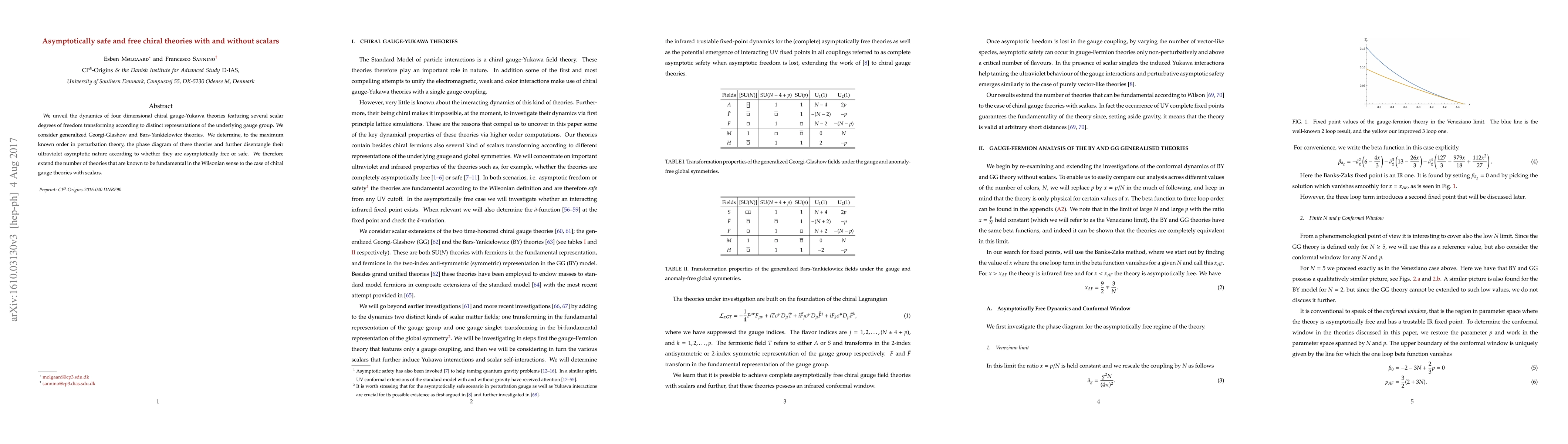 We unveil the dynamics of four dimensional chiral gauge-Yukawa theories featuring several scalar degrees of freedom transforming according to distinct representations of the underlying gauge group. We consider generalized Georgi-Glashow and Bars-Yankielowicz theories. We determine, to the maximum known order in perturbation theory, the phase diagram of these theories and further disentangle their ultraviolet asymptotic nature according to whether they are asymptotically free or safe. We therefore extend the number of theories that are known to be fundamental in the Wilsonian sense to the case of chiral gauge theories with scalars.