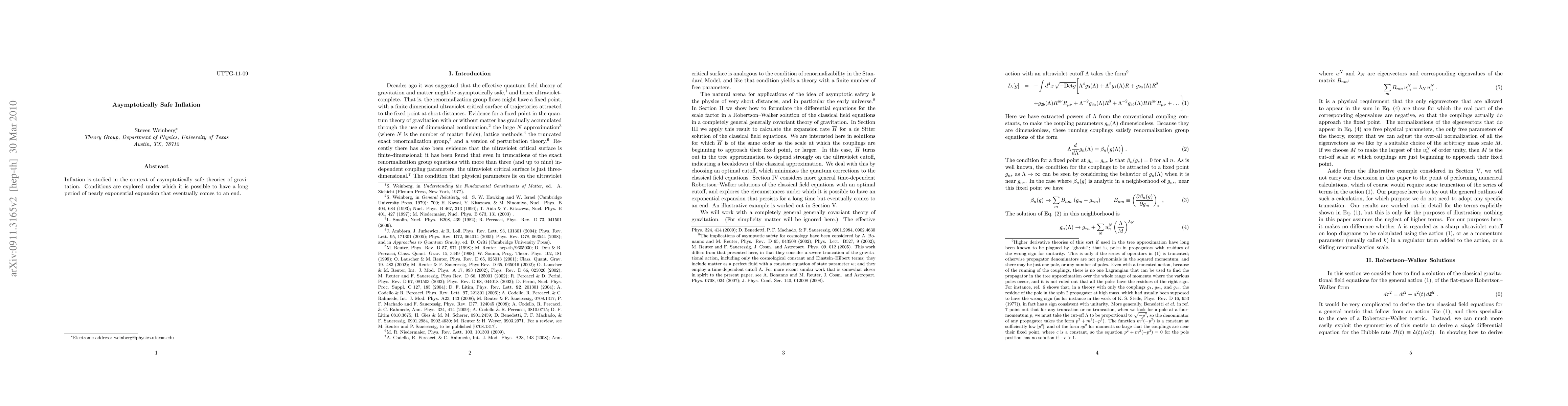 Inflation is studied in the context of asymptotically safe theories of gravitation. Conditions are explored under which it is possible to have a long period of nearly exponential expansion that eventually comes to an end.