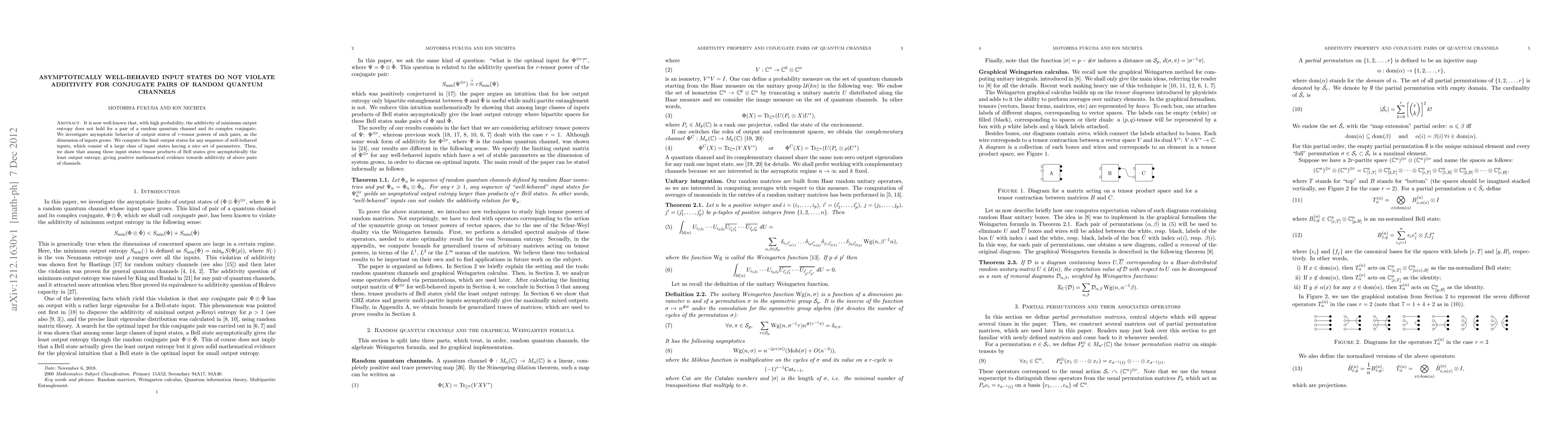 This paper explores the asymptotic behavior of output states from tensor powers of random quantum channels and their complex conjugates, demonstrating that well-behaved input states, including tensor products of Bell states, do not violate the additivity property for output entropy, providing mathematical evidence for the additivity conjecture.