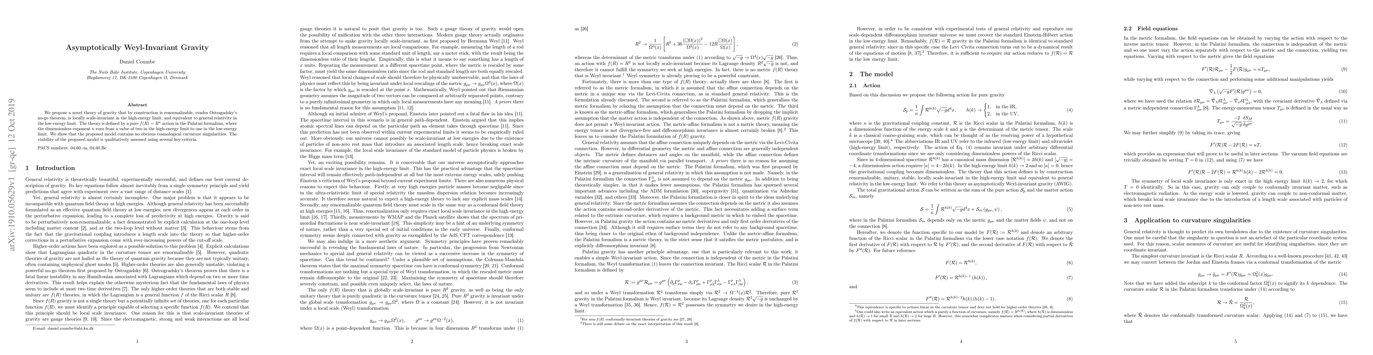 We propose a novel theory of gravity that by construction is renormalizable, evades Ostragadsky's no-go theorem, is locally scale-invariant in the high-energy limit, and equivalent to general relativity in the low-energy limit. The theory is defined by a pure f(R) = R^n action in the Palatini formalism, where the dimensionless exponent n runs from a value of two in the high-energy limit to one in the low-energy limit. We show that the proposed model contains no obvious cosmological curvature singularities. The viability of the proposed model is qualitatively assessed using several key criteria.