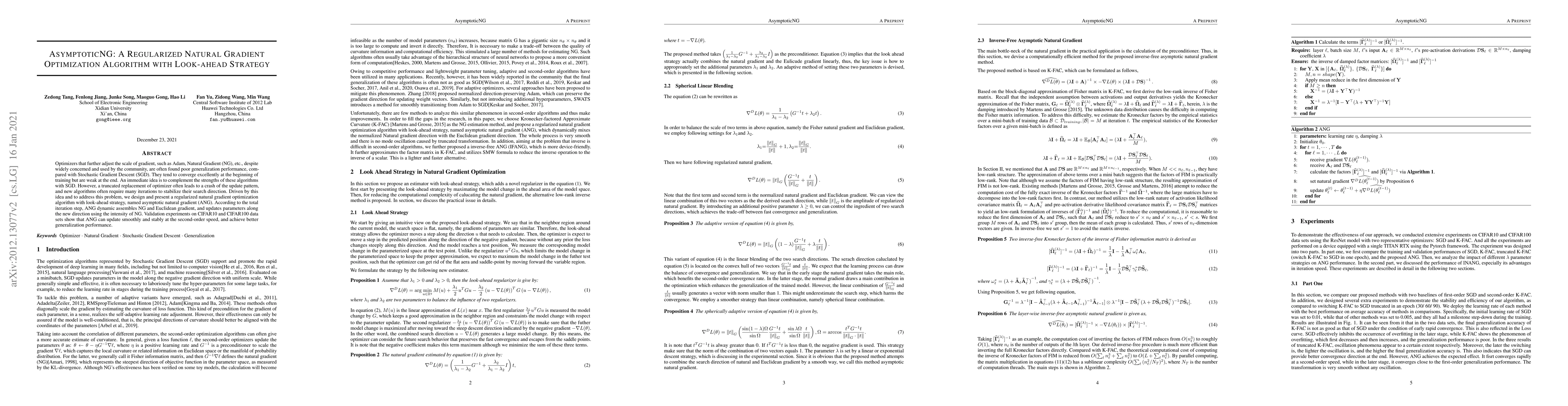 Optimizers that further adjust the scale of gradient, such as Adam, Natural Gradient (NG), etc., despite widely concerned and used by the community, are often found poor generalization performance, compared with Stochastic Gradient Descent (SGD). They tend to converge excellently at the beginning of training but are weak at the end. An immediate idea is to complement the strengths of these algorithms with SGD. However, a truncated replacement of optimizer often leads to a crash of the update pattern, and new algorithms often require many iterations to stabilize their search direction. Driven by this idea and to address this problem, we design and present a regularized natural gradient optimization algorithm with look-ahead strategy, named asymptotic natural gradient (ANG). According to the total iteration step, ANG dynamic assembles NG and Euclidean gradient, and updates parameters along the new direction using the intensity of NG. Validation experiments on CIFAR10 and CIFAR100 data sets show that ANG can update smoothly and stably at the second-order speed, and achieve better generalization performance.