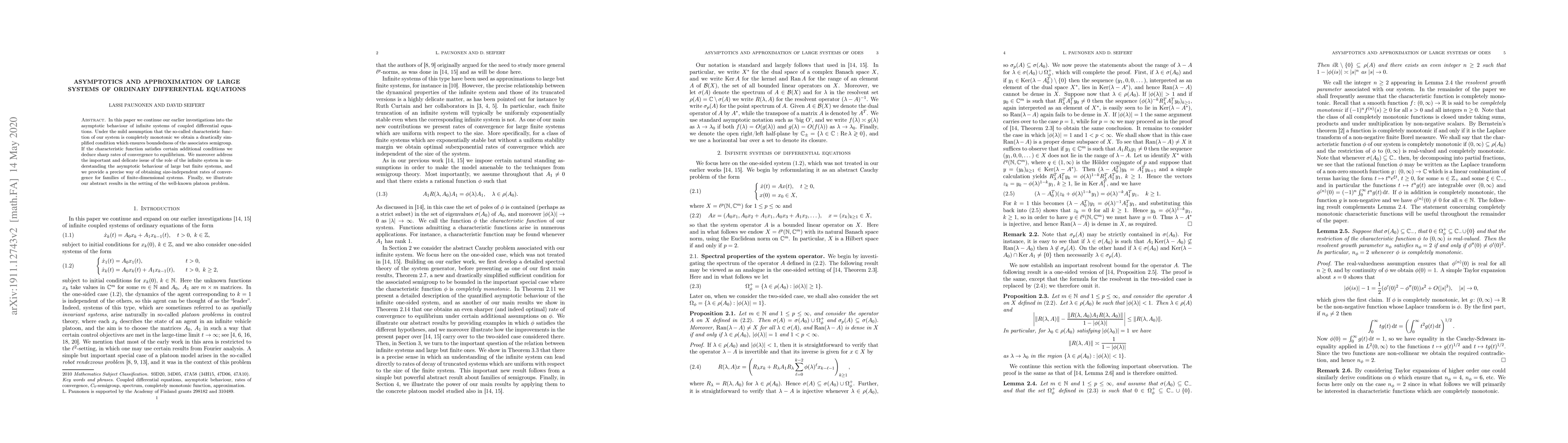 In this paper we continue our earlier investigations into the asymptotic behaviour of infinite systems of coupled differential equations. Under the mild assumption that the so-called characteristic function of our system is completely monotonic we obtain a drastically simplified condition which ensures boundedness of the associates semigroup. If the characteristic function satisfies certain additional conditions we deduce sharp rates of convergence to equilibrium. We moreover address the important and delicate issue of the role of the infinite system in understanding the asymptotic behaviour of large but finite systems, and we provide a precise way of obtaining size-independent rates of convergence for families of finite-dimensional systems. Finally, we illustrate our abstract results in the setting of the well-known platoon problem.
