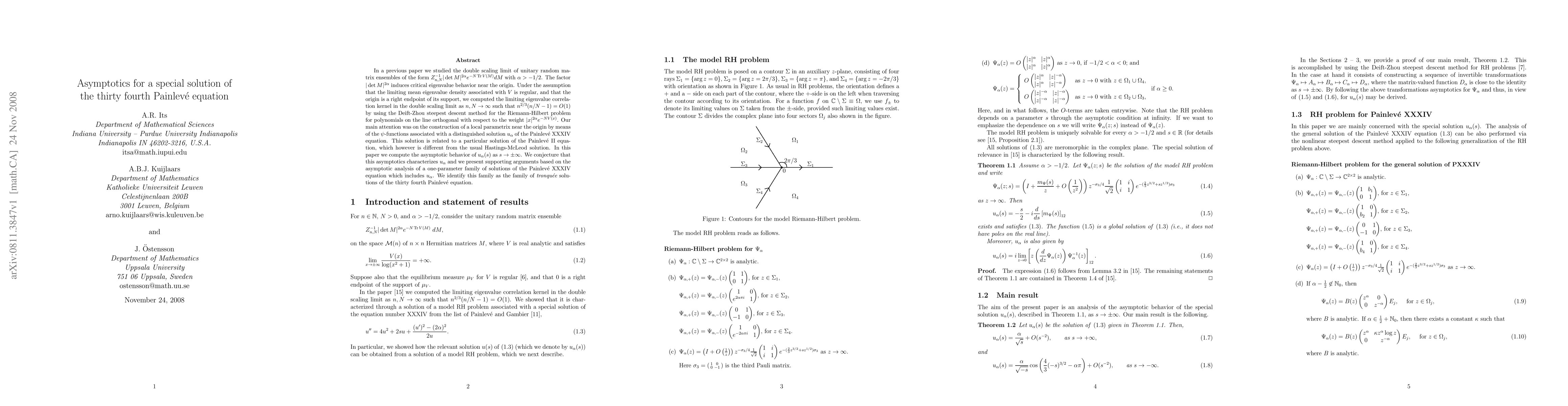 This paper computes the asymptotic behavior of a special solution \( u_{\alpha} \) of the Painleve XXXIV equation as \( s \to \pm \infty \). The authors conjecture that this asymptotics uniquely characterizes \( u_{\alpha} \) and provide supporting arguments based on the analysis of a family of tronquee solutions of the Painleve XXXIV equation.
