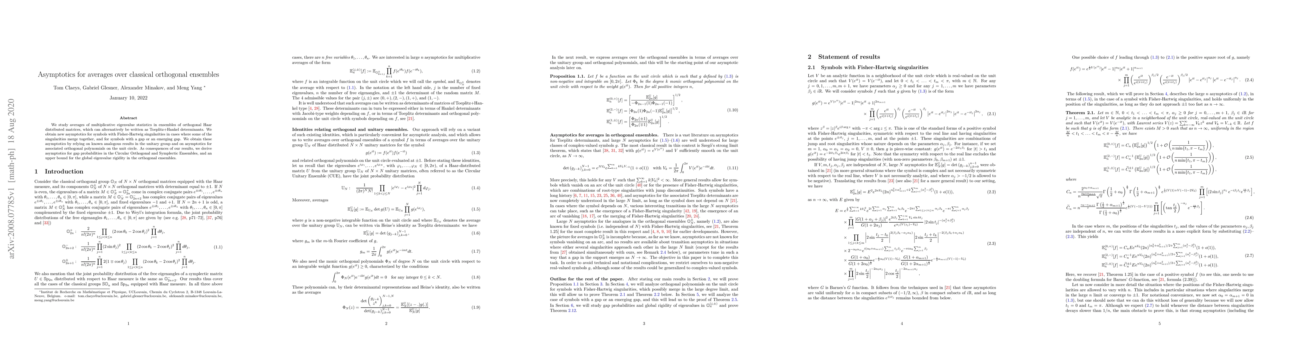 We study averages of multiplicative eigenvalue statistics in ensembles of orthogonal Haar distributed matrices, which can alternatively be written as Toeplitz+Hankel determinants. We obtain new asymptotics for symbols with Fisher-Hartwig singularities in cases where some of the singularities merge together, and for symbols with a gap or an emerging gap. We obtain these asymptotics by relying on known analogous results in the unitary group and on asymptotics for associated orthogonal polynomials on the unit circle. As consequences of our results, we derive asymptotics for gap probabilities in the Circular Orthogonal and Symplectic Ensembles, and an upper bound for the global eigenvalue rigidity in the orthogonal ensembles.