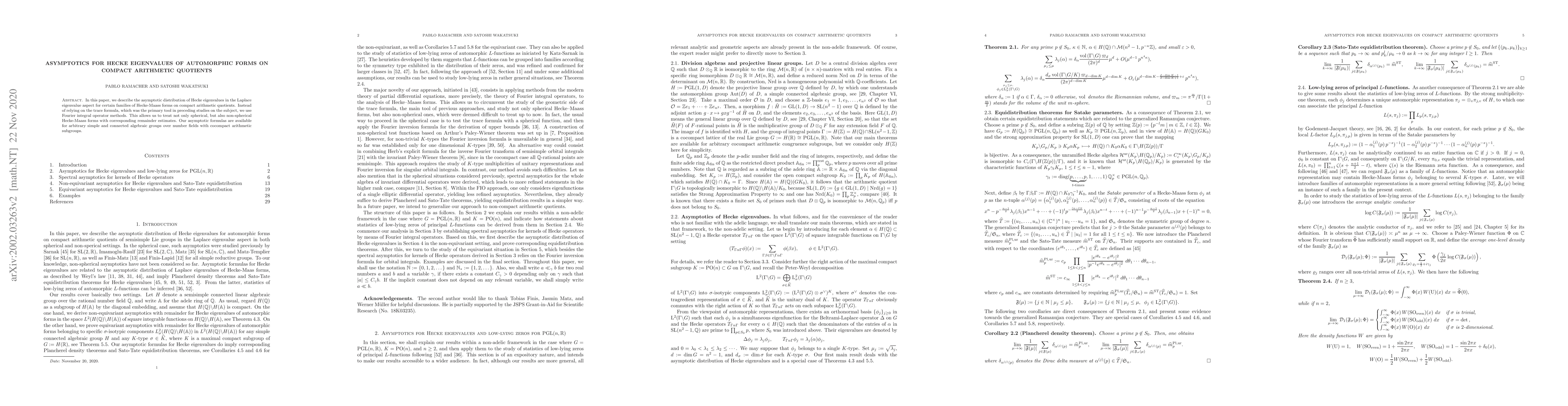 This paper investigates the asymptotic distribution of Hecke eigenvalues for Hecke-Maass forms on compact arithmetic quotients using Fourier integral operator methods instead of the trace formula. The results apply to both spherical and non-spherical forms, providing remainder estimates for arbitrary simple and connected algebraic groups over number fields.