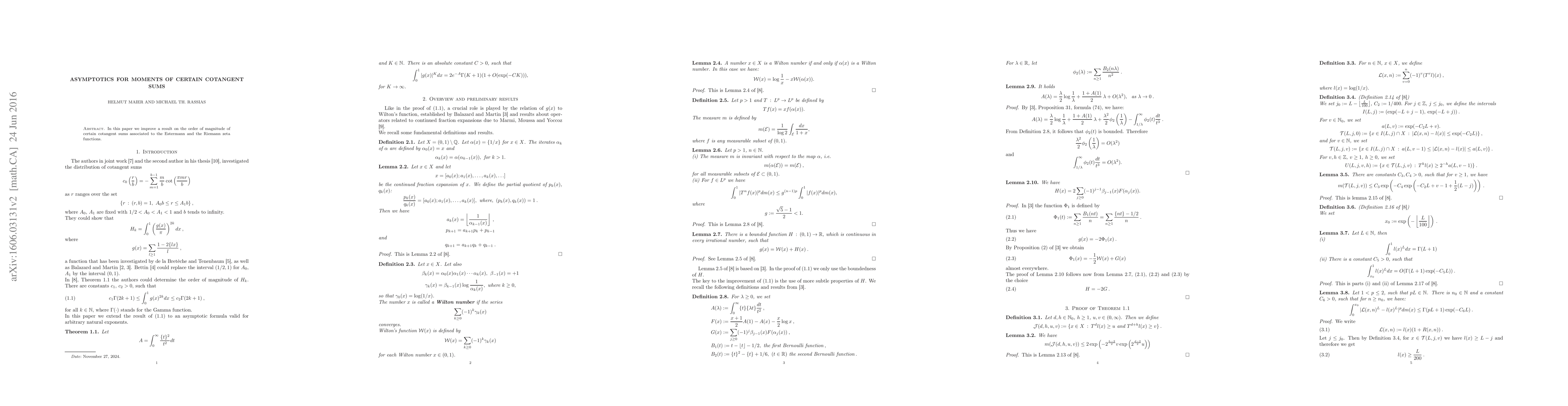 In this paper we improve a result on the order of magnitude of certain cotangent sums associated to the Estermann and the Riemann zeta functions.