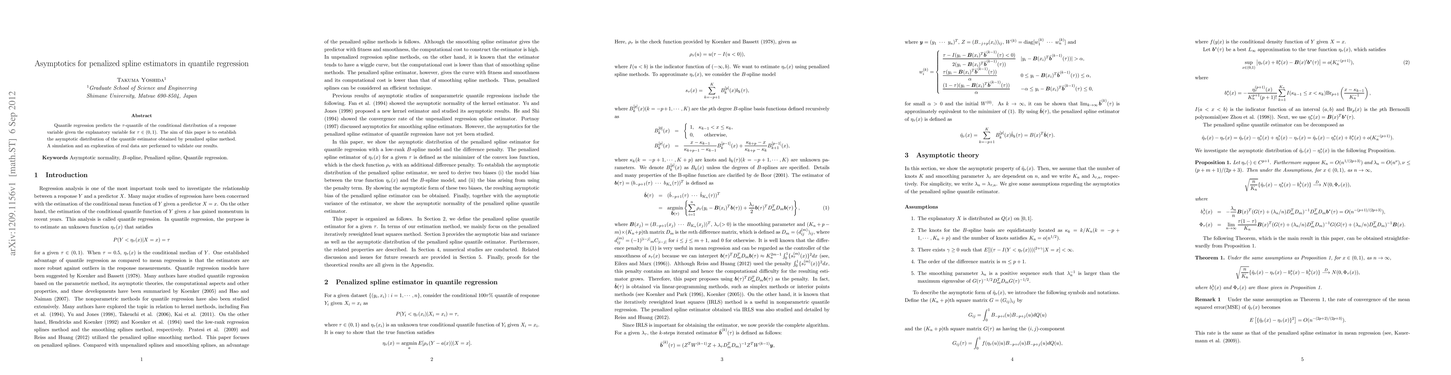 This paper establishes the asymptotic distribution for penalized spline estimators in quantile regression, focusing on the $\tau$-quantile of the conditional distribution. Simulation and real data analysis validate the theoretical results.