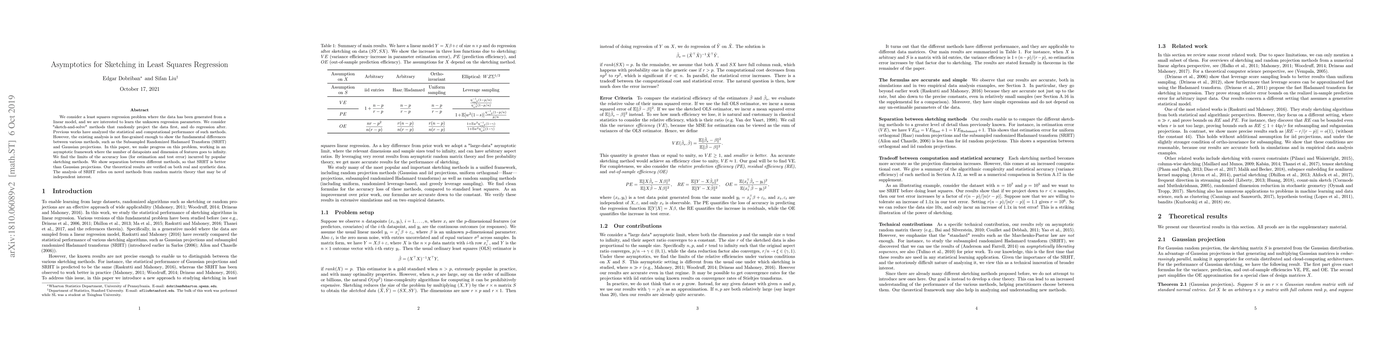 This paper analyzes the accuracy loss of popular sketching methods in least squares regression as the number of data points and features goes to infinity. It finds that SRHT outperforms Gaussian projections with novel random matrix theory methods.