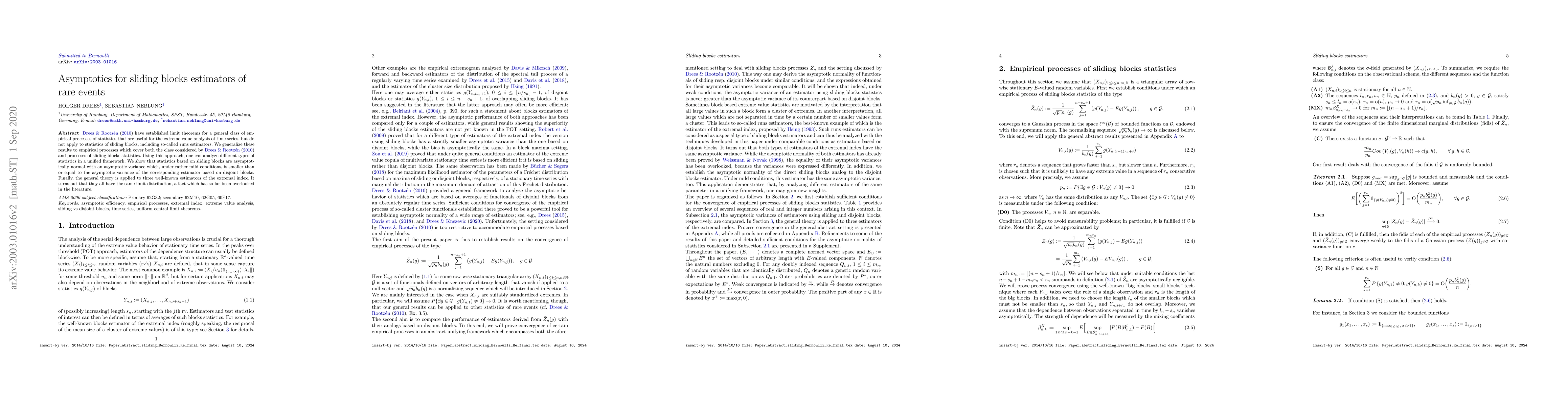 This paper generalizes limit theorems for empirical processes to include sliding blocks estimators, showing they are asymptotically normal with potentially lower variance compared to estimators based on disjoint blocks. The unified framework reveals that three well-known estimators of the extremal index share the same limit distribution.