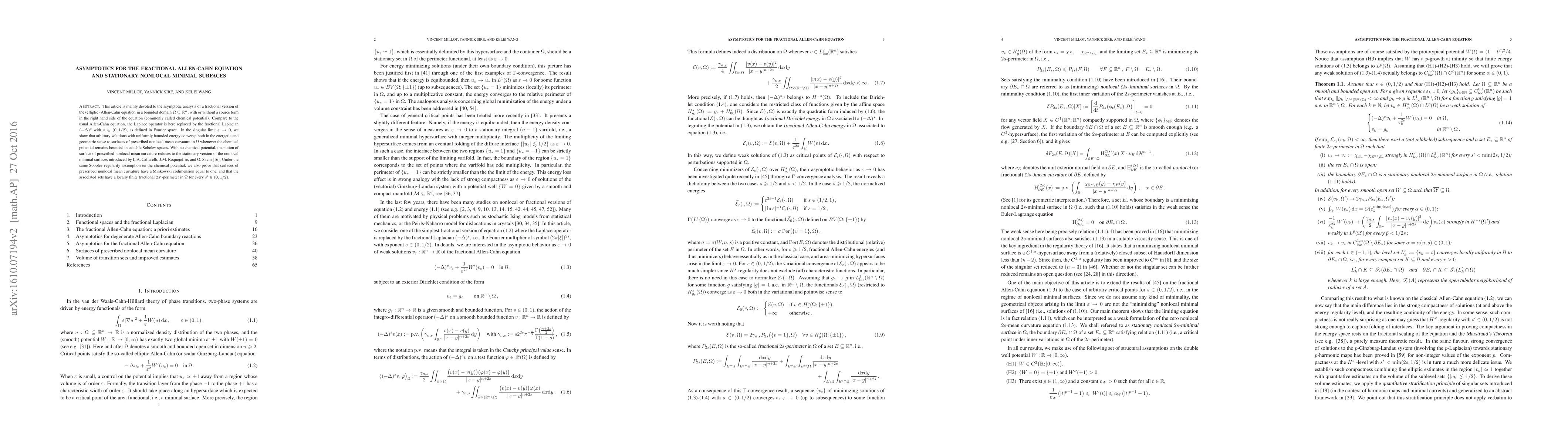 This paper studies the asymptotic behavior of a fractional Allen-Cahn equation, showing that solutions converge to stationary nonlocal minimal surfaces in the limit. It also proves that these surfaces have a Minkowski codimension of one and locally finite fractional perimeter.