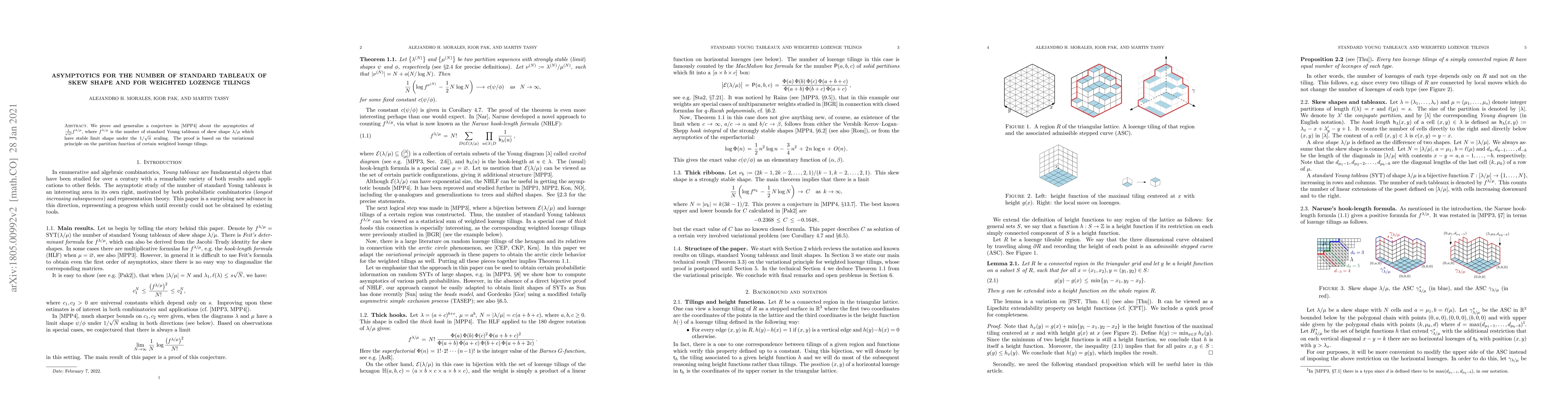 This paper proves and generalizes a conjecture regarding the asymptotic behavior of the number of standard Young tableaux of skew shape under $1/\sqrt{n}$ scaling, using the variational principle applied to the partition function of weighted lozenge tilings.