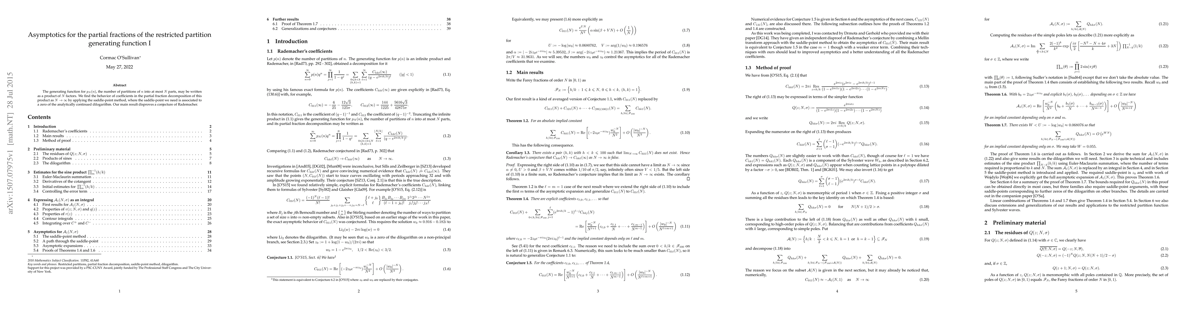 This research paper presents a novel asymptotic analysis of the partial fraction coefficients for the generating function of restricted partitions using the saddle-point method. It disproves a prior conjecture by Rademacher, revealing new insights into the behavior of partition functions as the number of parts tends to infinity.