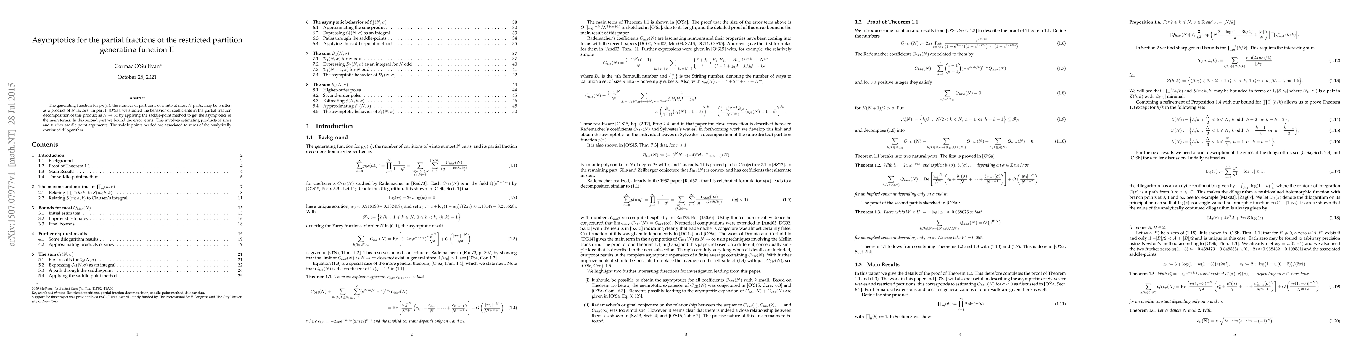The generating function for $p_N(n)$, the number of partitions of $n$ into at most $N$ parts, may be written as a product of $N$ factors. In part I, we studied the behavior of coefficients in the partial fraction decomposition of this product as $N \to \infty$ by applying the saddle-point method to get the asymptotics of the main terms. In this second part we bound the error terms. This involves estimating products of sines and further saddle-point arguments. The saddle-points needed are associated to zeros of the analytically continued dilogarithm.