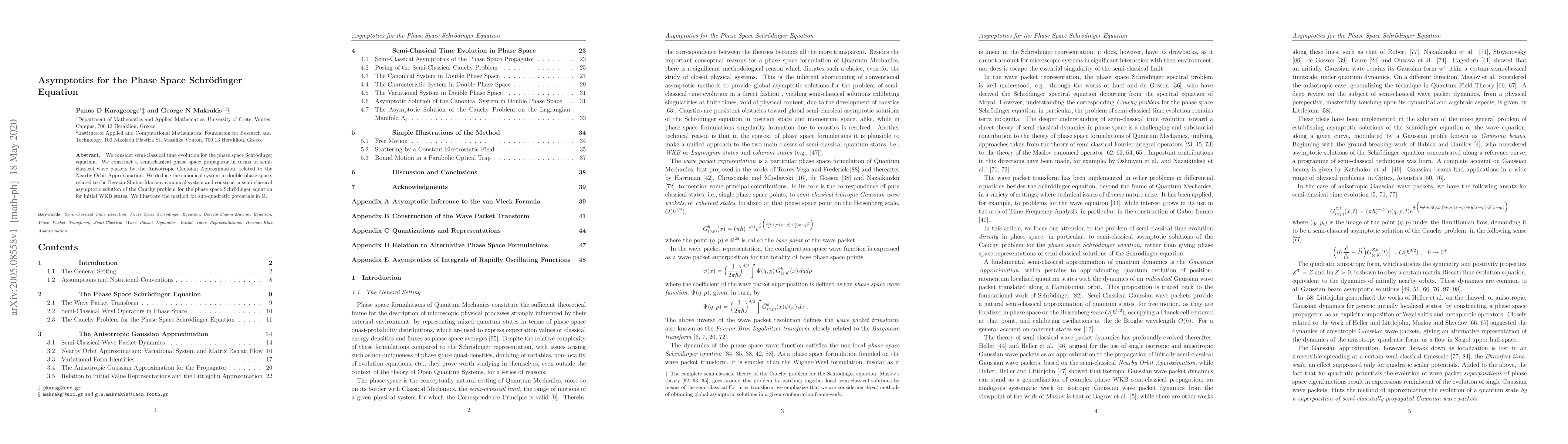 This paper constructs a semi-classical phase space propagator for the Schrödinger equation using the Anisotropic Gaussian Approximation and deduces a canonical system in double phase space. It provides a semi-classical asymptotic solution for the phase space Schrödinger equation for initial WKB states, illustrated for sub-quadratic potentials.