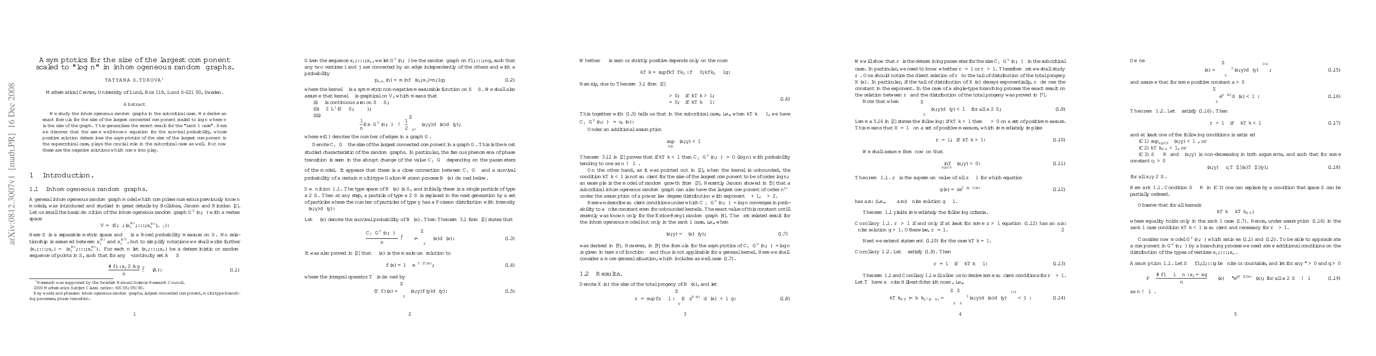 This paper derives an exact formula for the size of the largest connected component in inhomogeneous random graphs, scaled to $\log n$, generalizing previous results for the rank 1 case. It reveals that the same equation used for the supercritical case's survival probability, now through its negative solutions, determines the subcritical case's asymptotics.