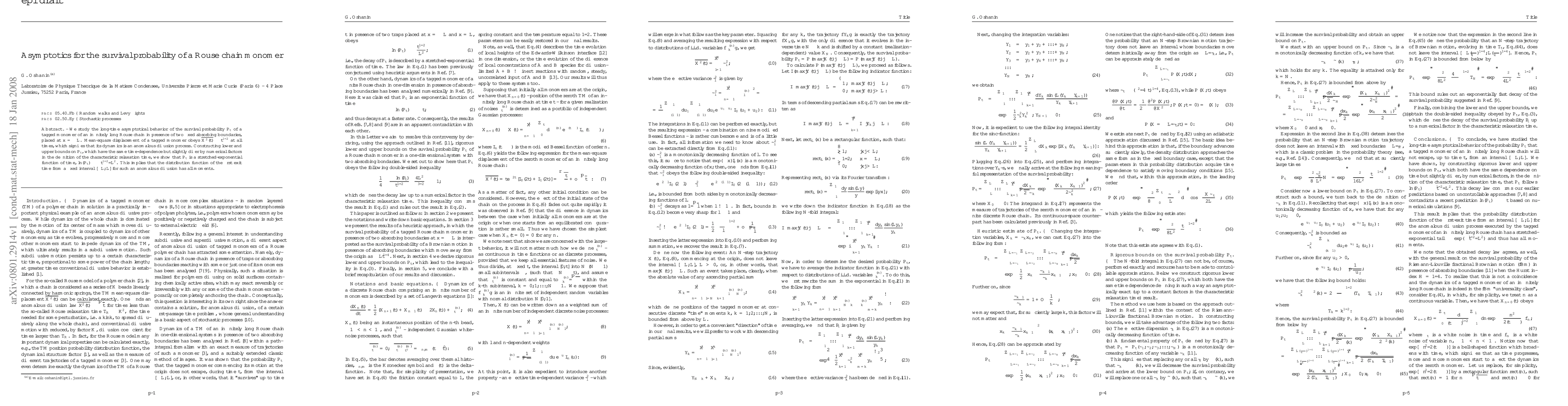 We study the long-time asymptotical behavior of the survival probability P_t of a tagged monomer of an infinitely long Rouse chain in presence of two fixed absorbing boundaries, placed at x = \pm L. Mean-square displacement of a tagged monomer obeys \bar{X^2(t)} \sim t^{1/2} at all times, which signifies that its dynamics is an anomalous diffusion process. Constructing lower and upper bounds on P_t, which have the same time-dependence but slightly differ by numerical factors in the definition of the characteristic relaxation time, we show that P_t is a stretched-exponential function of time, \ln(P_t) \sim - t^{1/2}/L^2. This implies that the distribution function of the first exit time from a fixed interval [-L,L] for such an anomalous diffusion has all moments.