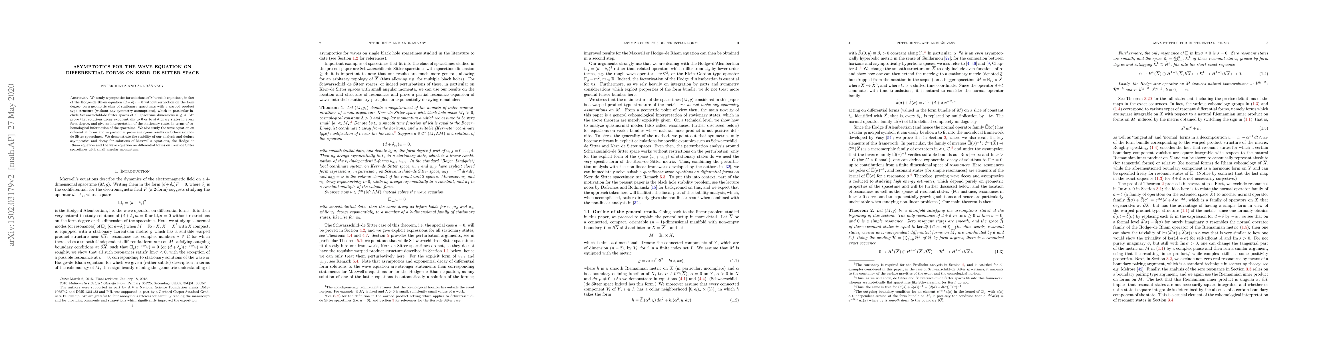 This paper investigates the asymptotic behavior of solutions to Maxwell's equations and the Hodge-de Rham equation on Kerr-de Sitter spacetimes, proving exponential decay to zero or stationary states. It also explores the wave equation on differential forms and demonstrates stability and decay for solutions on these spacetimes.