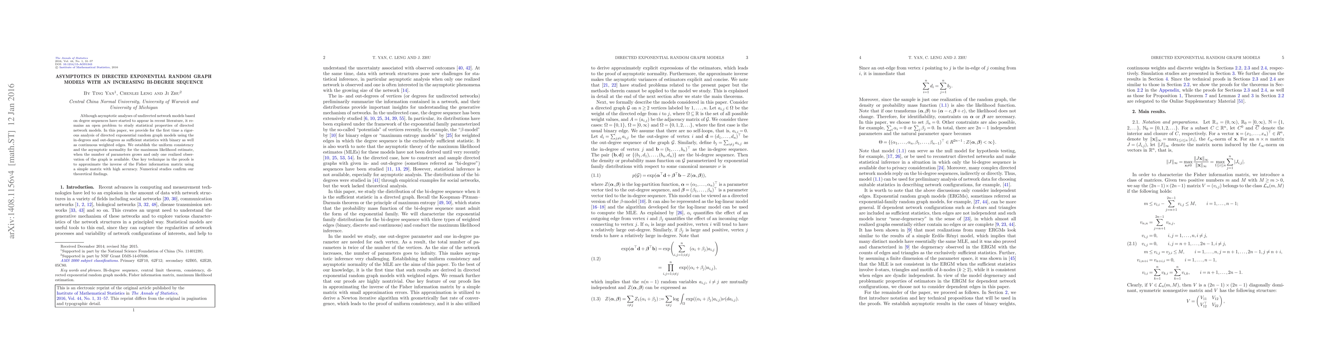 This paper presents the first rigorous analysis of directed exponential random graph models, focusing on in-degrees and out-degrees as sufficient statistics. It proves the uniform consistency and asymptotic normality of the maximum likelihood estimate for binary and continuous weighted edges, using a simple matrix approximation for the Fisher information matrix inverse. Numerical studies support these theoretical findings.