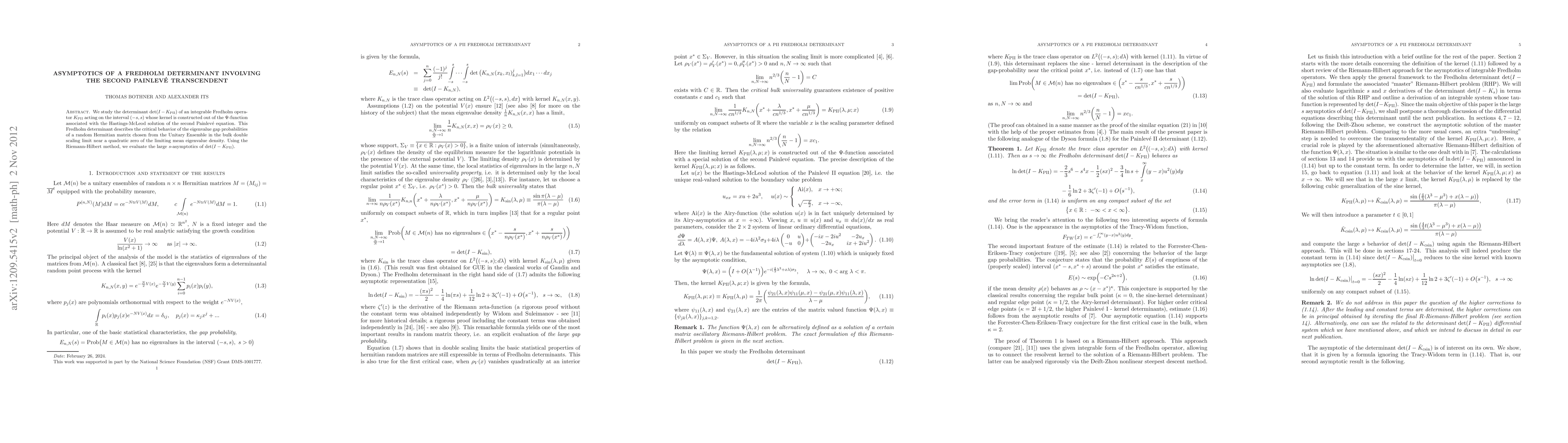 We study the determinant $\det(I-K_{\textnormal{PII}})$ of an integrable Fredholm operator $K_{\textnormal{PII}}$ acting on the interval $(-s,s)$ whose kernel is constructed out of the $\Psi$-function associated with the Hastings-McLeod solution of the second Painlev\'e equation. This Fredholm determinant describes the critical behavior of the eigenvalue gap probabilities of a random Hermitian matrix chosen from the Unitary Ensemble in the bulk double scaling limit near a quadratic zero of the limiting mean eigenvalue density. Using the Riemann-Hilbert method, we evaluate the large $s$-asymptotics of $\det(I-K_{\textnormal{PII}})$.