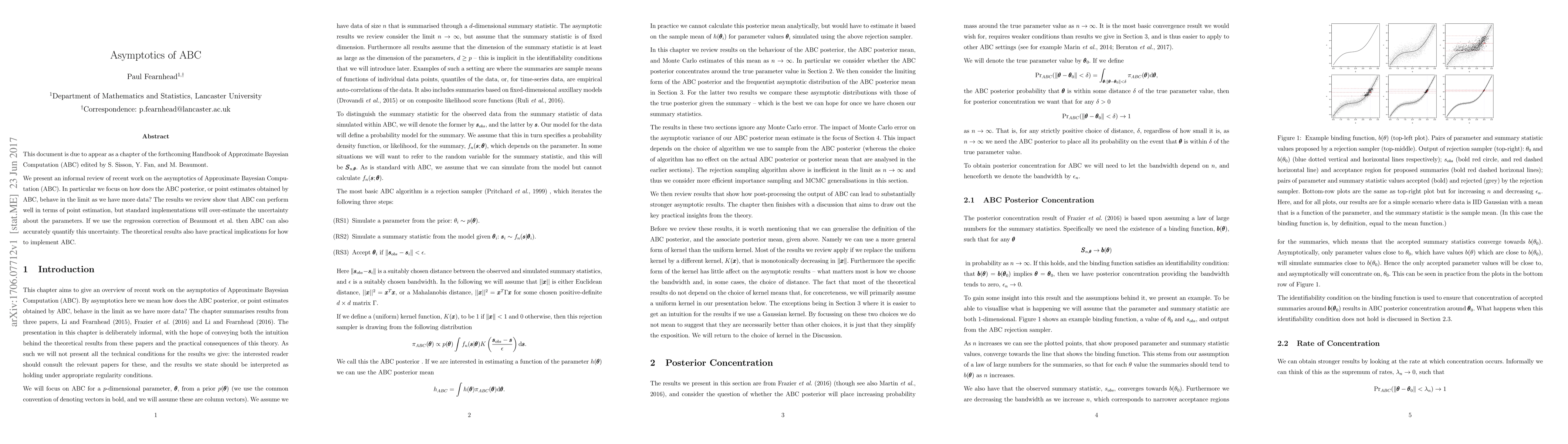 This paper reviews recent developments in the asymptotic behavior of Approximate Bayesian Computation (ABC), highlighting that while standard ABC implementations tend to over-estimate parameter uncertainty, the regression correction method by Beaumont et al. can accurately quantify this uncertainty. Practical implications for ABC implementation are also discussed.