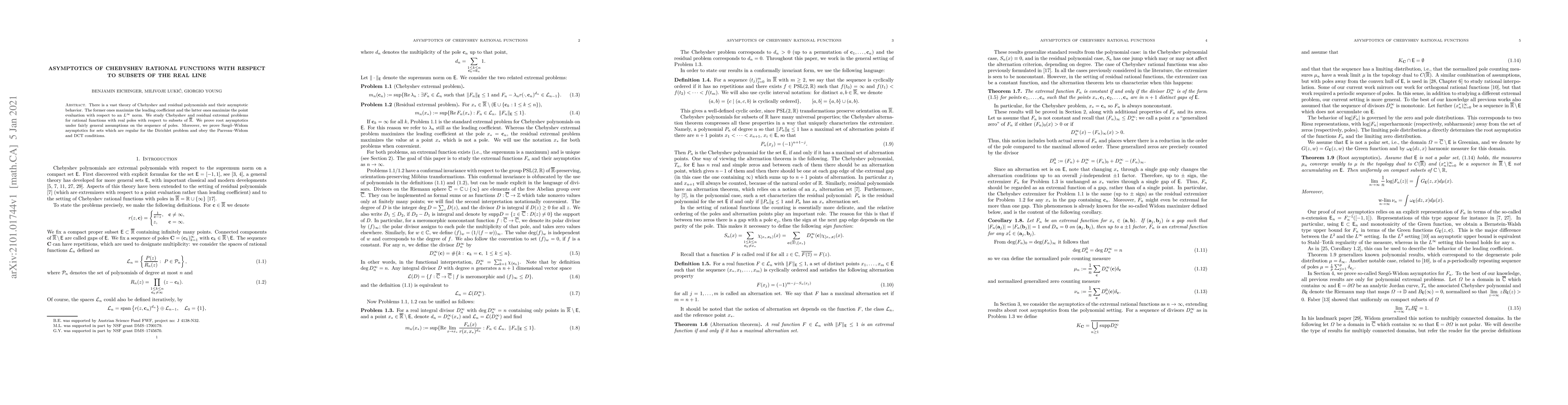 This paper investigates the asymptotic behavior of Chebyshev and residual rational functions with real poles concerning subsets of the extended real line. It establishes root asymptotics for sequences of poles and proves Szegő-Widom asymptotics for regular sets satisfying specific conditions.