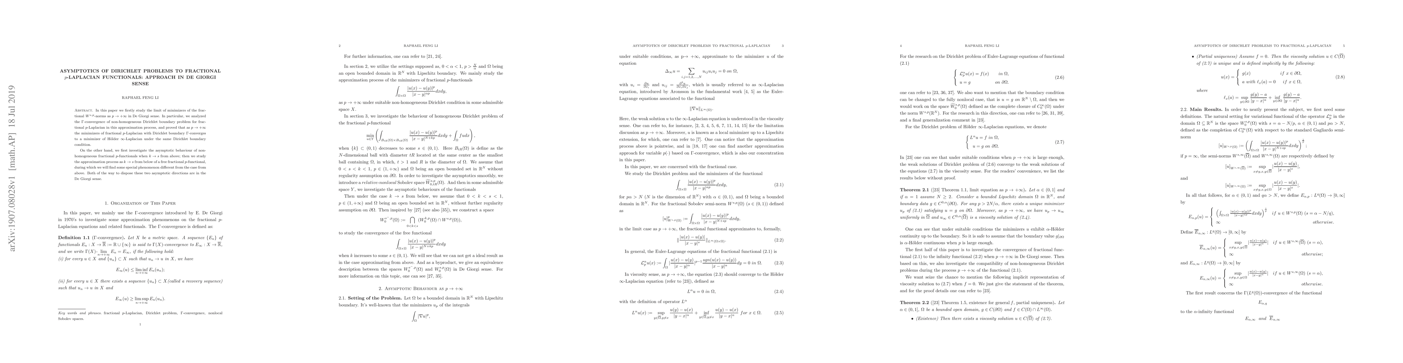 In this paper we firstly study the limit of minimizers of the fractional $W^{s,p}$-norms as $p\rightarrow+\infty$ in De Giorgi sense. In particular, we analyzed the $\Gamma$-convergence of non-homogeneous Dirichlet boundary problem for fractional $p$-Laplacian in this approximation process, and proved that as $p\rightarrow+\infty$ the minimizers of fractional $p$-Laplacian with Dirichlet boundary $\Gamma$-converges to a minimizer of H\"{o}lder $\infty$-Laplacian under the same Dirichlet boundary condition. On the other hand, we first investigate the asymptotic behaviour of non-homogeneous fractional $p$-functionals when $k\rightarrow s$ from above; then we study the approximation process as $k\rightarrow s$ from below of a free fractional $p$-functional, during which we will find some special phenomenon different from the case from above. Both of the way to dispose these two asymptotic directions are in the De Giorgi sense.