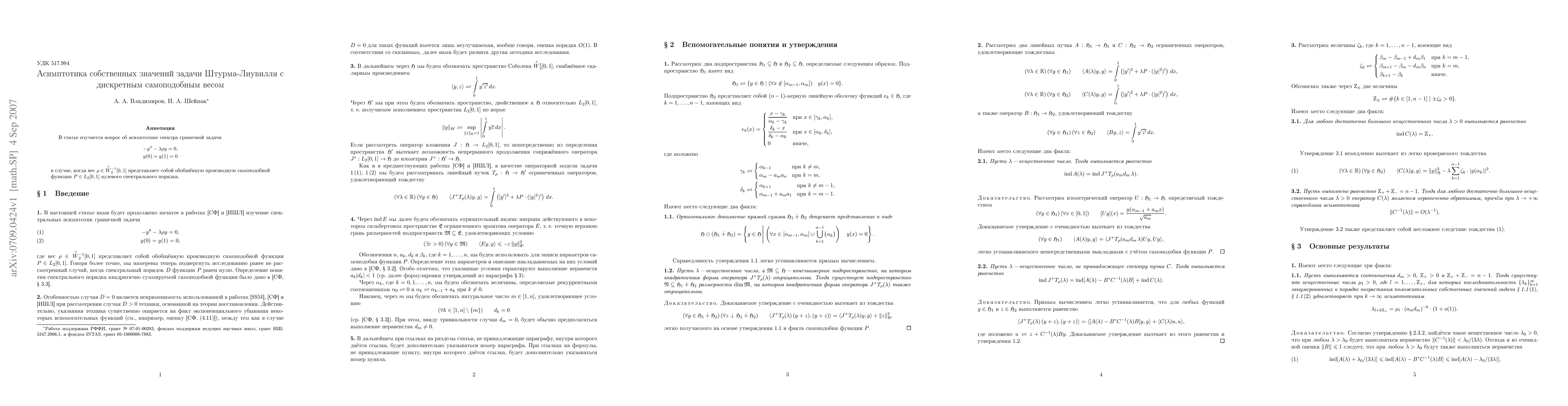 The Sturm--Liouville problem $-y''-\lambda\rho y=0$, $y(0)=y(1)=0$, where $\rho$ is a generalized derivative of self-similar function $P\in L_2[0,1]$ with spectral degree D=0, is studied. Asymptotic formulas for eigenvalues are obtained.