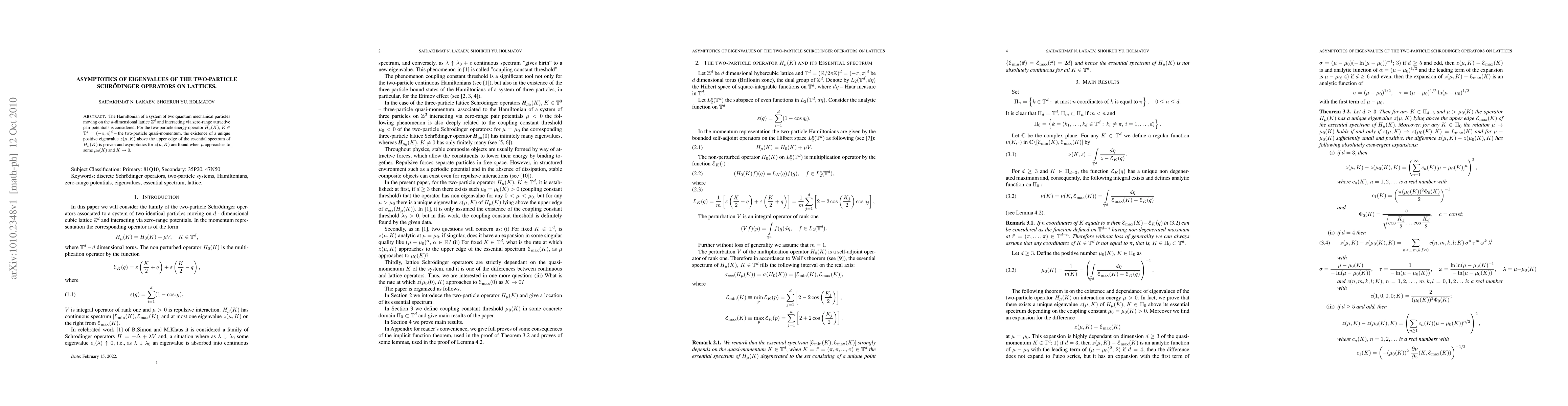 This research paper proves that a unique positive eigenvalue of the two-particle energy operator exists on a d-dimensional lattice for certain interactions, with asymptotics found as the interaction parameter approaches a critical value and the quasi-momentum goes to zero.