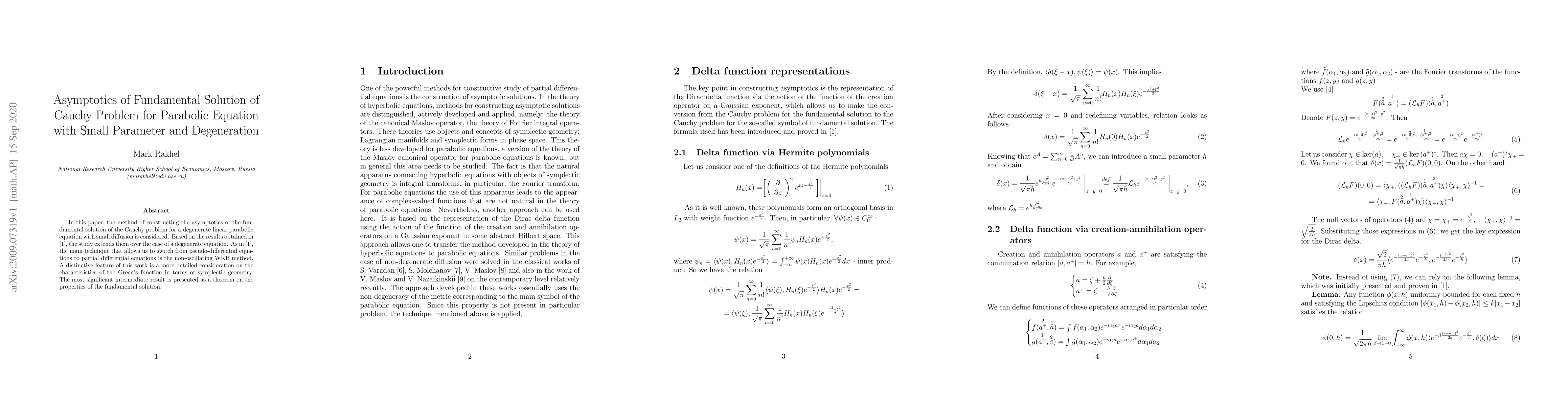 In this paper, the method of constructing the asymptotics of the fundamental solution of the Cauchy problem for a degenerate linear parabolic equation with small diffusion is considered. Based on the results obtained in \cite{dn}, the study extends them over the case of a degenerate equation. As in \cite{dn}, the main technique that allows us to switch from pseudo-differential equations to partial differential equations is the non-oscillating WKB method. A distinctive feature of this work is a more detailed consideration on the characteristics of the Green's function in terms of symplectic geometry. The most significant intermediate result is presented as a theorem on the properties of the fundamental solution.