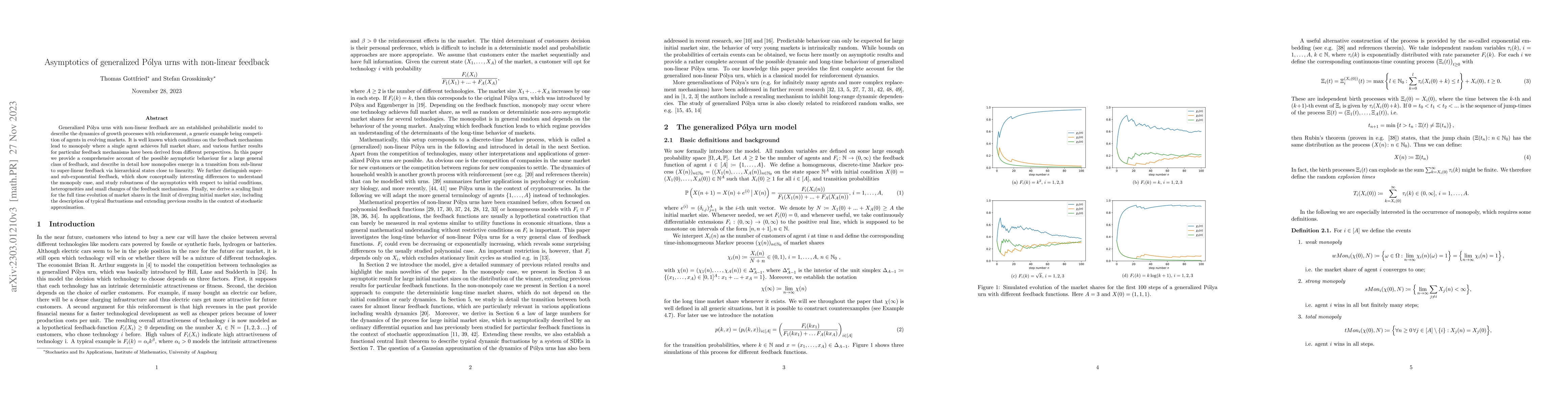This paper investigates the asymptotic behavior of generalized Pólya urns with non-linear feedback, focusing on the transition from sub-linear to super-linear feedback that leads to monopolies. It explores the robustness of these dynamics under varying initial conditions and feedback mechanisms, and provides a scaling limit for the time evolution of market shares.
