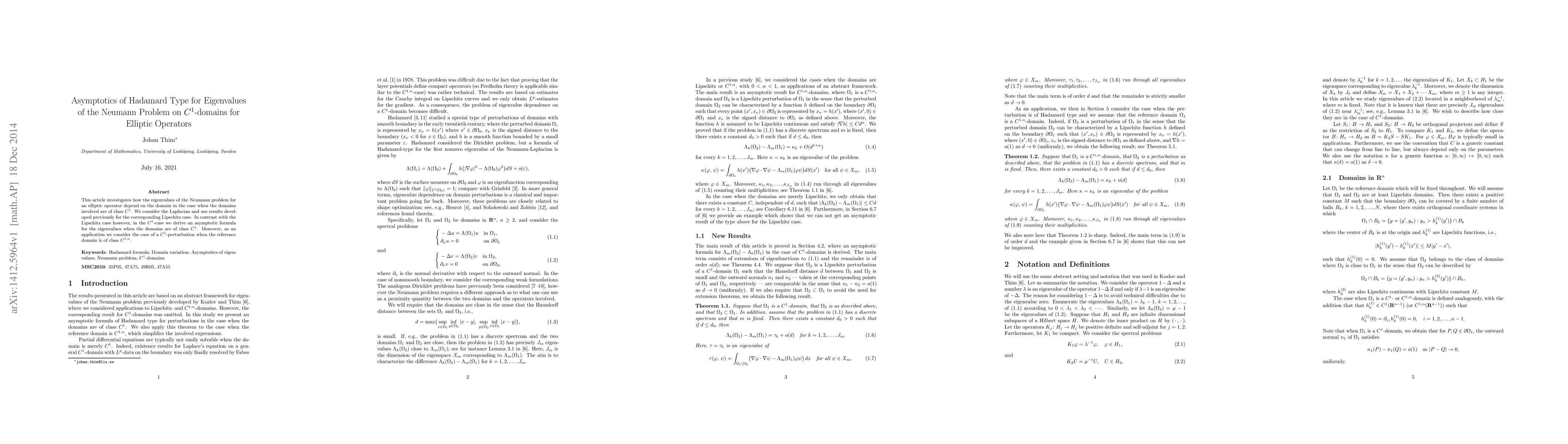 This paper investigates how eigenvalues of the Neumann problem for an elliptic operator depend on C^1 domains, providing an asymptotic formula in the C^1 case and applying it to a C^1-perturbation scenario.
