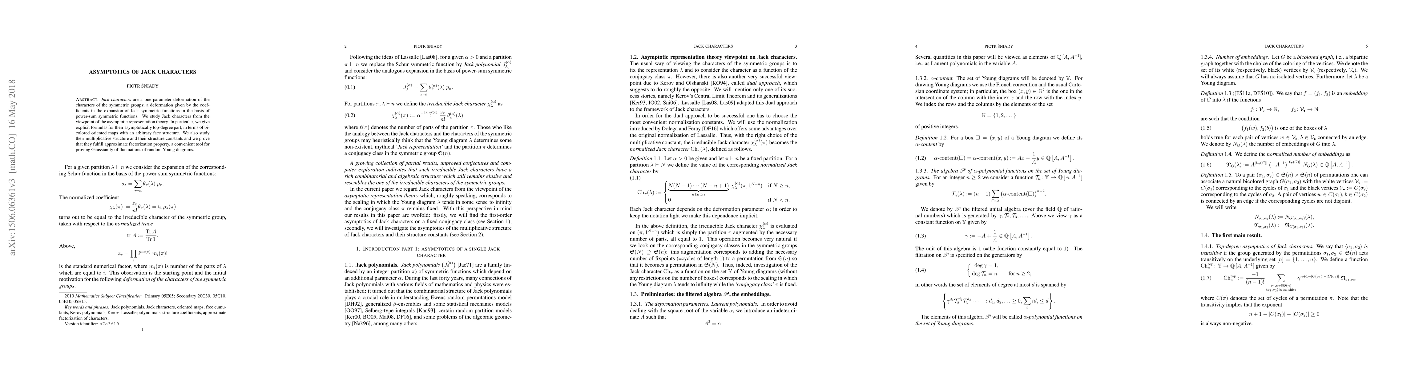 This paper investigates the asymptotic behavior of Jack characters, providing explicit formulas for their top-degree part in terms of bicolored oriented maps. It also explores their multiplicative structure and proves the approximate factorization property, which aids in demonstrating the Gaussianity of fluctuations in random Young diagrams.