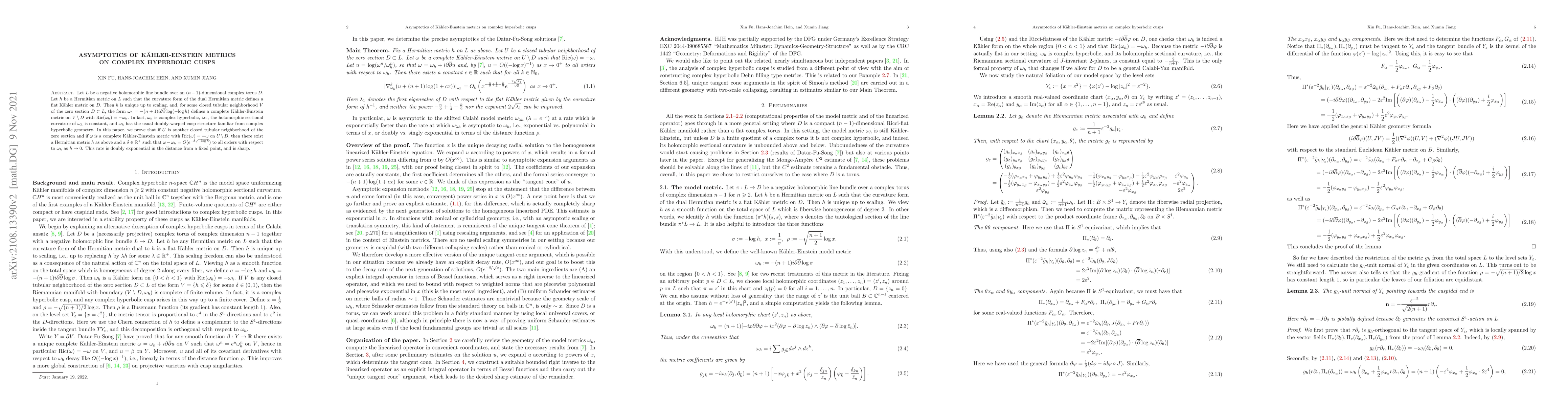 Researchers prove that a unique K"ahler-Einstein metric exists near the zero section of a complex torus, with properties similar to those found in complex hyperbolic geometry.