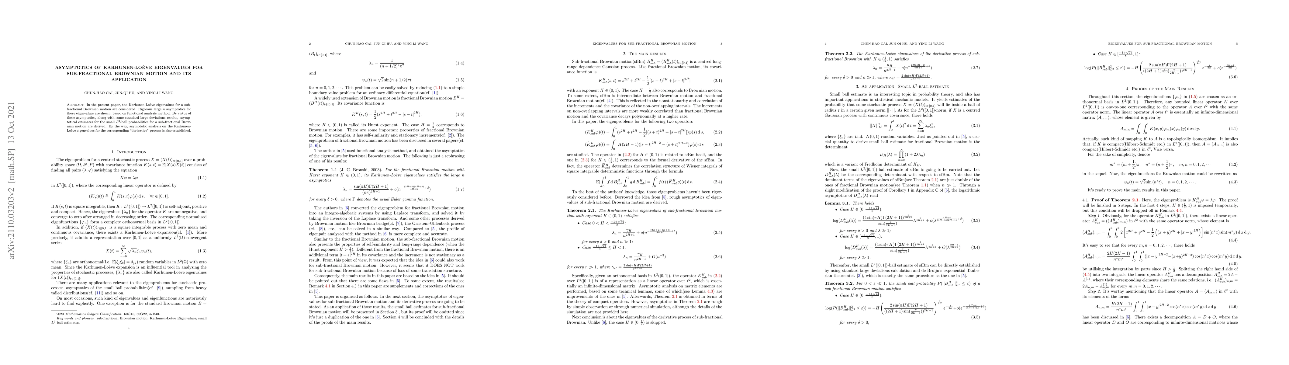This paper investigates the asymptotic behavior of Karhunen-Loève eigenvalues for sub-fractional Brownian motion when the Hurst parameter exceeds 1/2. It derives rigorous large $n$ asymptotics using functional analysis, which subsequently aids in estimating small $L^2$-ball probabilities for the sub-fractional Brownian motion.