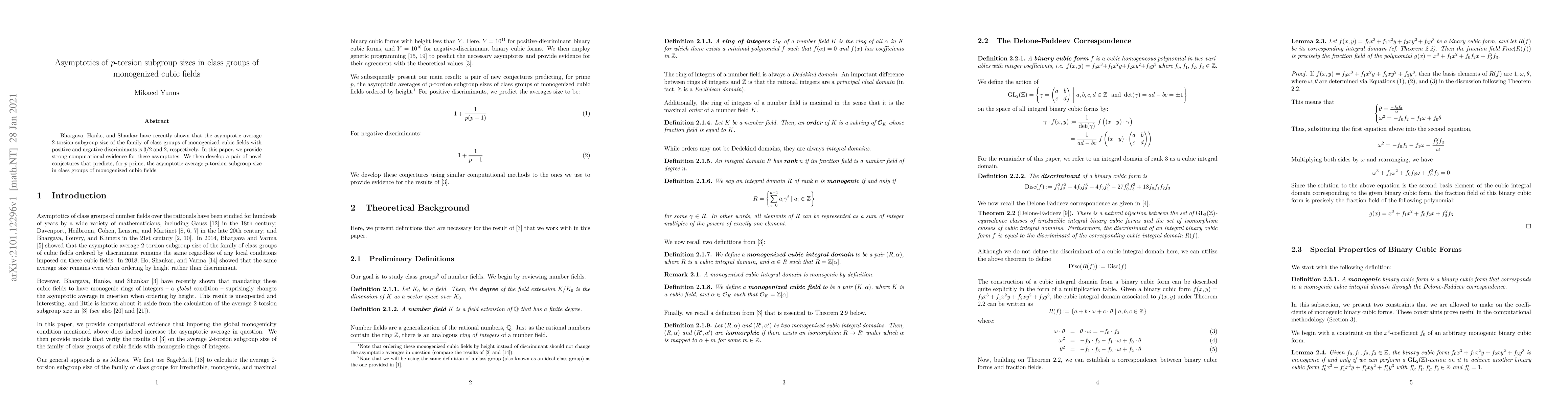 This paper builds on previous work by Bhargava, Hanke, and Shankar on $2$-torsion in class groups of monogenized cubic fields, providing computational evidence for their findings and proposing new conjectures predicting the asymptotic average $p$-torsion subgroup size for any prime $p$.