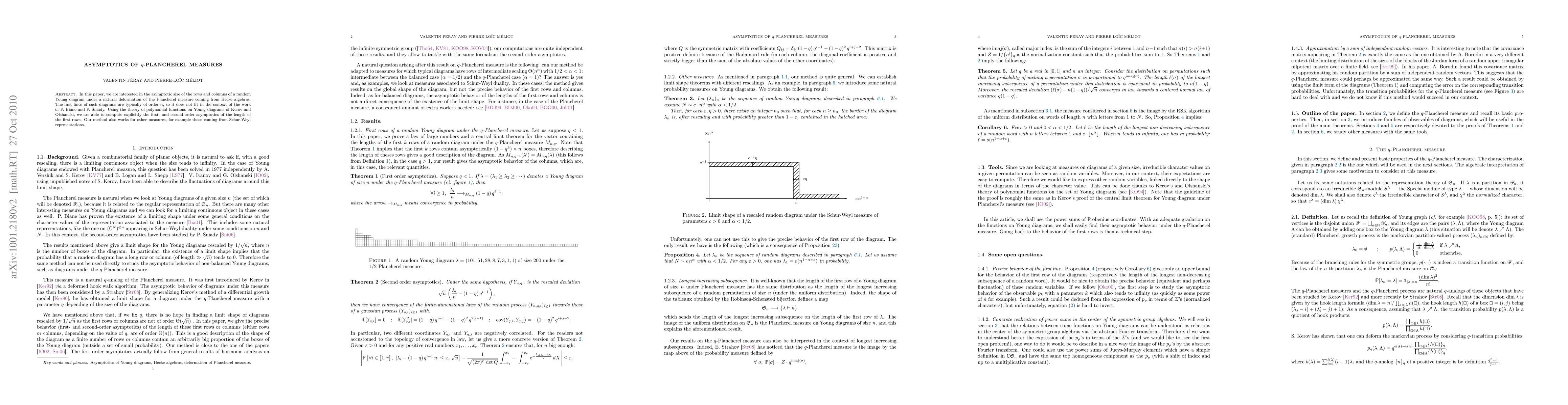 This paper investigates the asymptotic behavior of rows and columns in random Young diagrams under a deformed Plancherel measure from Hecke algebras, computing the first- and second-order asymptotics of the first row's length using Kerov and Olshanski's theory. The method extends to other measures, such as those from Schur-Weyl representations.