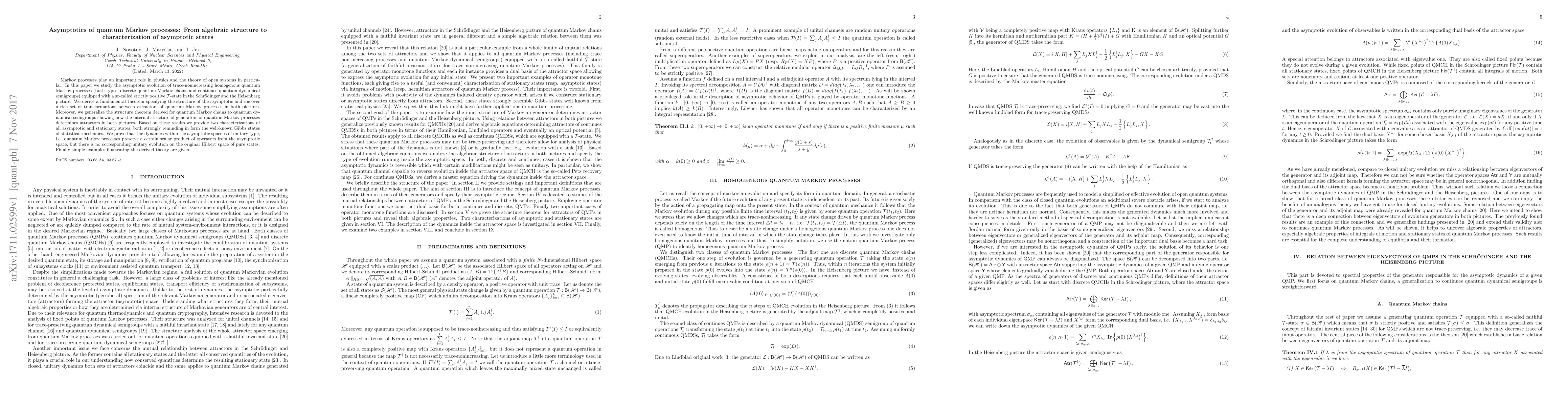 Markov processes play an important role in physics and the theory of open systems in particular. In this paper we study the asymptotic evolution of trace-nonincreasing homogenous quantum Markov processes (both types, discrete quantum Markov chains and continues quantum dynamical semigroups) equipped with a so-called strictly positive T -state in the Schrodinger and the Heisenberg picture. We derive a fundamental theorem specifying the structure of the asymptotic and uncover a rich set of transformations between attractors of quantum Markov processes in both pictures. Moreover, we generalize the structure theorem derived for quantum Markov chains to quantum dynamical semigroups showing how the internal structure of generators of quantum Markov processes determines attractors in both pictures. Based on these results we provide two characterizations of all asymptotic and stationary states, both strongly reminding in form the well-known Gibbs states of statistical mechanics. We prove that the dynamics within the asymptotic space is of unitary type, i.e. quantum Markov processes preserve a certain scalar product of operators from the asymptotic space, but there is no corresponding unitary evolution on the original Hilbert space of pure states. Finally simple examples illustrating the derived theory are given.
