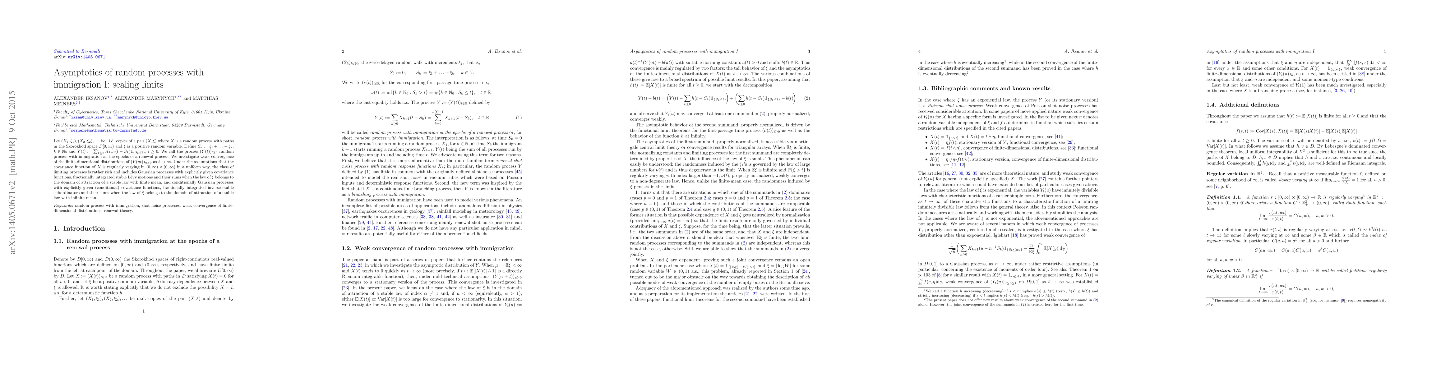 Let $(X_1, \xi_1), (X_2,\xi_2),\ldots$ be i.i.d.~copies of a pair $(X,\xi)$ where $X$ is a random process with paths in the Skorokhod space $D[0,\infty)$ and $\xi$ is a positive random variable. Define $S_k := \xi_1+\ldots+\xi_k$, $k \in \mathbb{N}_0$ and $Y(t) := \sum_{k\geq 0} X_{k+1}(t-S_k) 1_{\{S_k \leq t\}}$, $t\geq 0$. We call the process $(Y(t))_{t \geq 0}$ random process with immigration at the epochs of a renewal process. We investigate weak convergence of the finite-dimensional distributions of $(Y(ut))_{u>0}$ as $t\to\infty$. Under the assumptions that the covariance function of $X$ is regularly varying in $(0,\infty)\times (0,\infty)$ in a uniform way, the class of limiting processes is rather rich and includes Gaussian processes with explicitly given covariance functions, fractionally integrated stable L\'evy motions and their sums when the law of $\xi$ belongs to the domain of attraction of a stable law with finite mean, and conditionally Gaussian processes with explicitly given (conditional) covariance functions, fractionally integrated inverse stable subordinators and their sums when the law of $\xi$ belongs to the domain of attraction of a stable law with infinite mean.