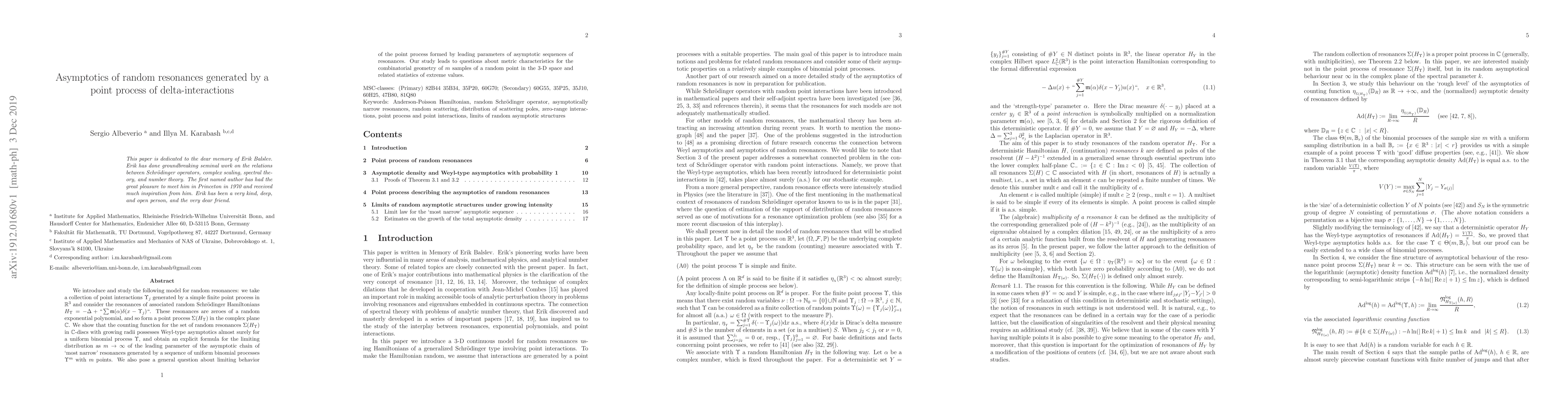 Researchers studied random resonances in 3D space generated by point interactions, finding asymptotic behavior similar to Weyl's theorem and explicit formulas for resonance counts and leading parameters.
