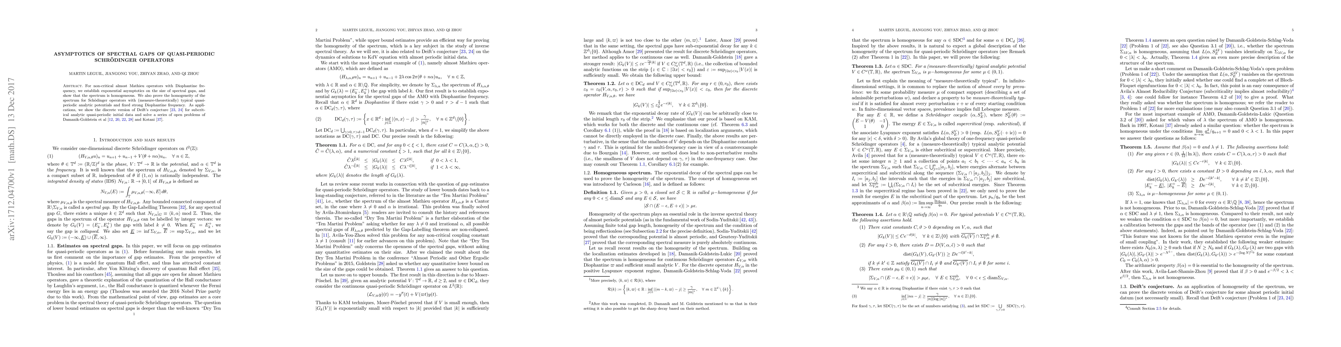 For non-critical almost Mathieu operators with Diophantine frequency, we establish exponential asymptotics on the size of spectral gaps, and show that the spectrum is homogeneous. We also prove the homogeneity of the spectrum for Sch\"odinger operators with (measure-theoretically) typical quasi-periodic analytic potentials and fixed strong Diophantine frequency. As applications, we show the discrete version of Deift's conjecture \cite{Deift, Deift17} for subcritical analytic quasi-periodic initial data and solve a series of open problems of Damanik-Goldstein et al \cite{BDGL, DGL1, dgsv, Go} and Kotani \cite{Kot97}.